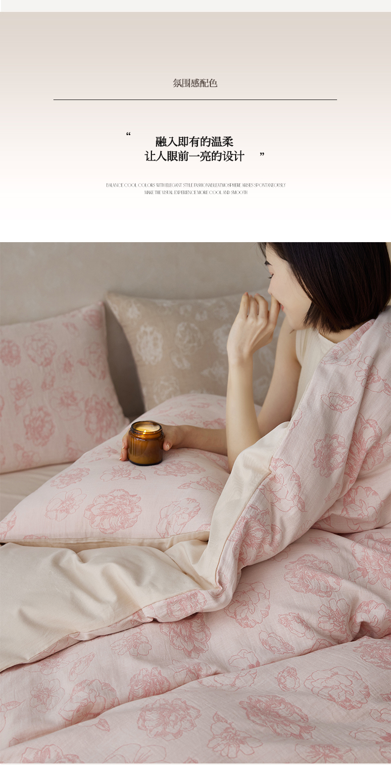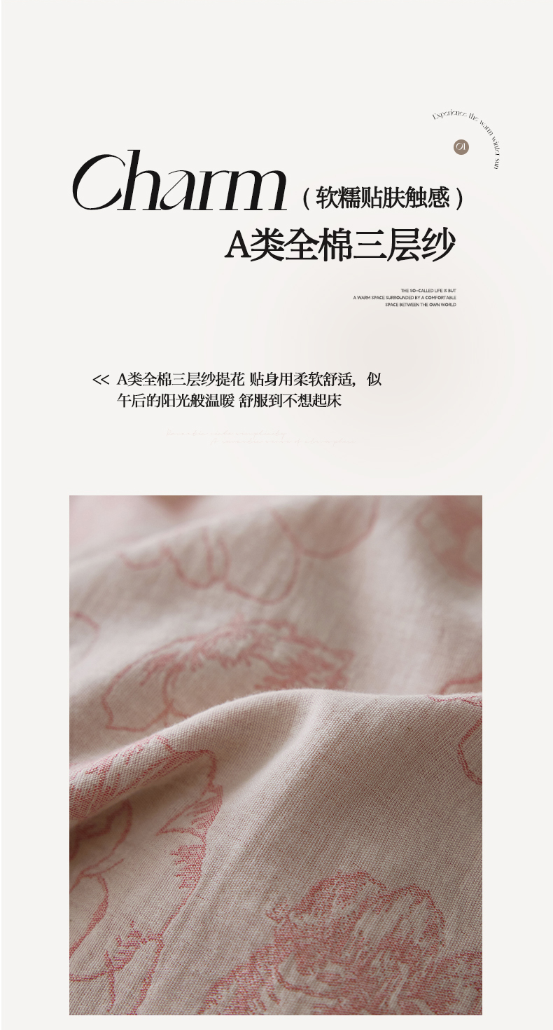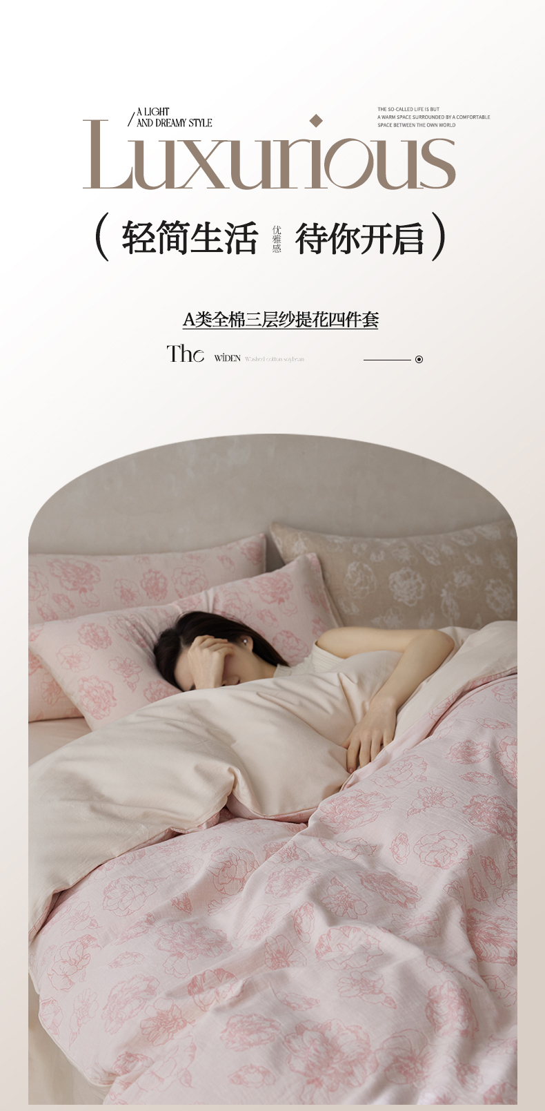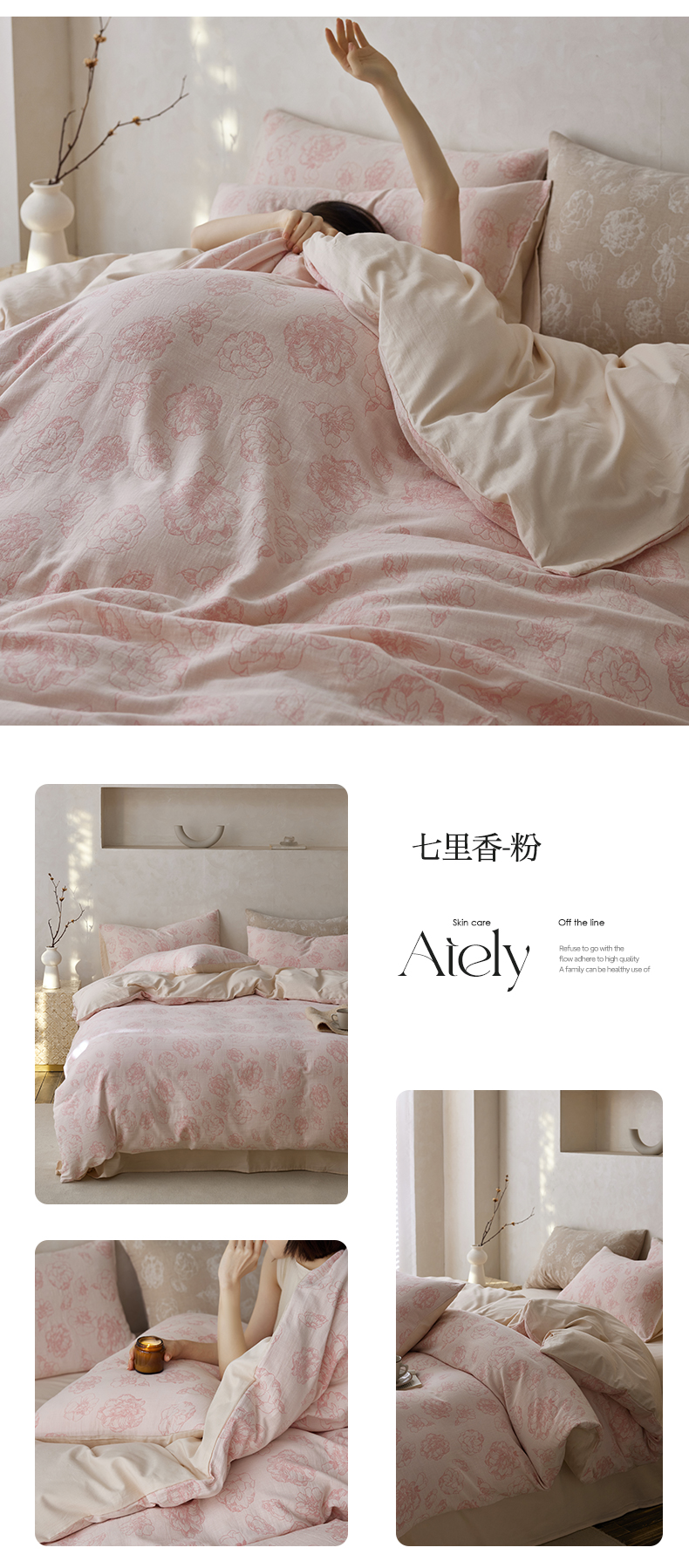商品名称:卡巴伦家纺 2024新款纯棉A类三层纱水洗棉大提花四件套 七里香-粉