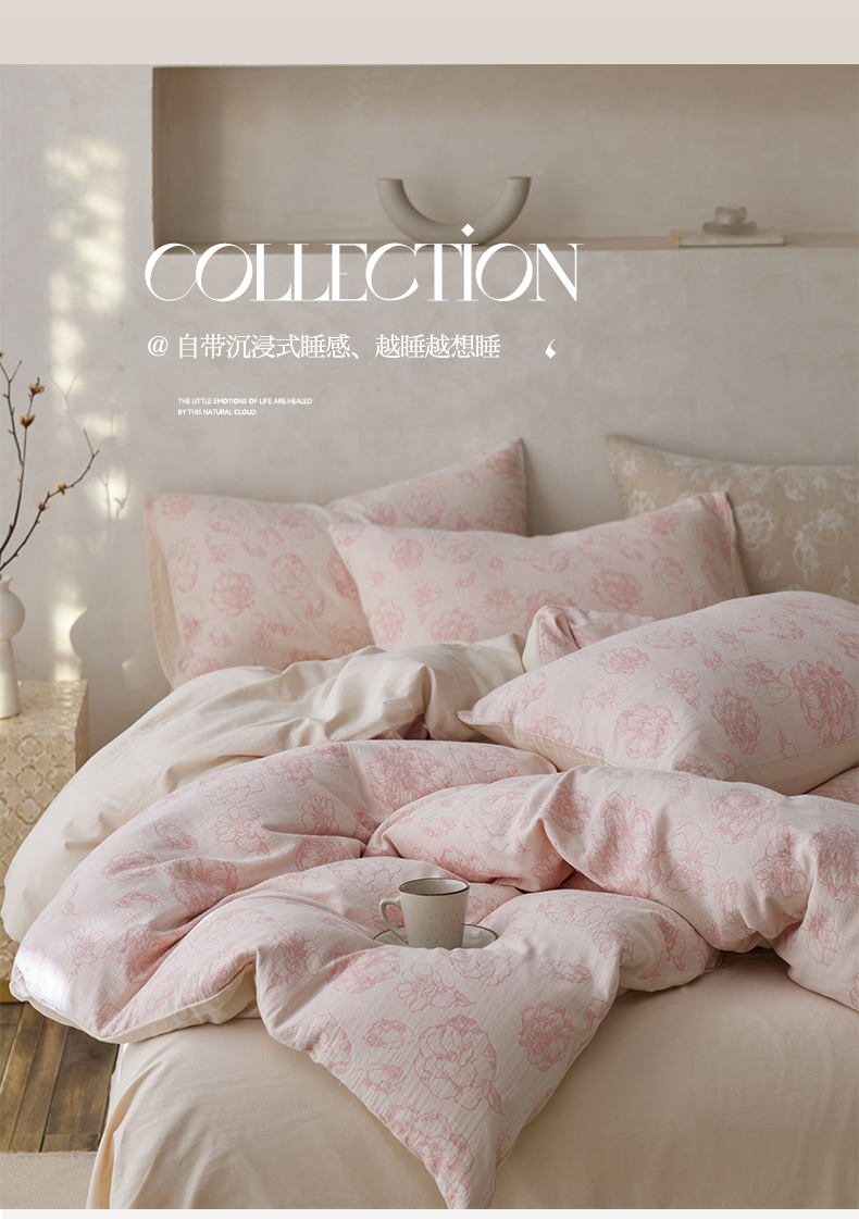 卡巴伦家纺 2024新款纯棉A类三层纱水洗棉大提花四件套 七里香-粉