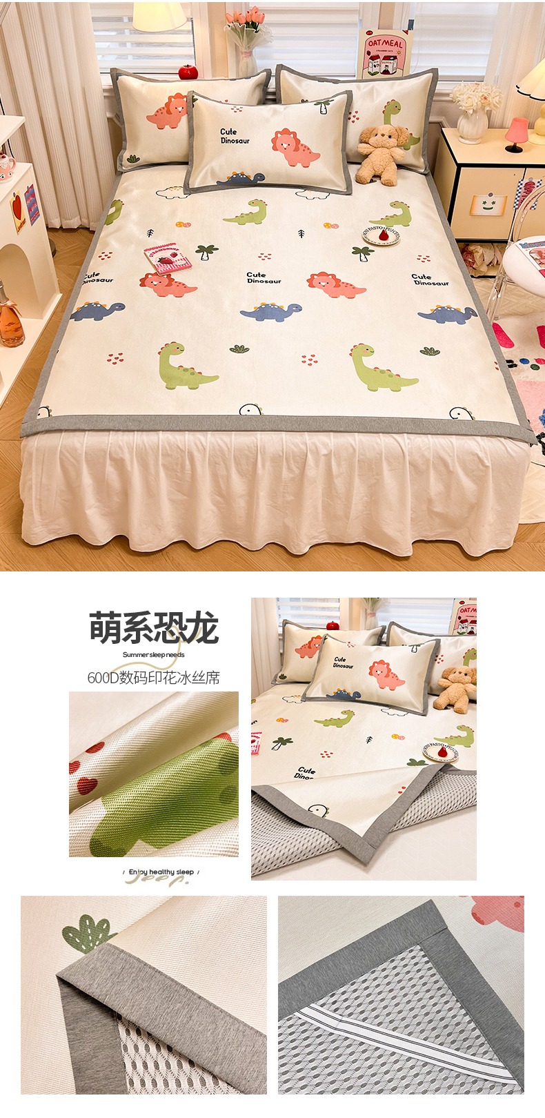 商品名称:懒猫 2024新款600D数码印花冰丝凉席 萌系恐龙