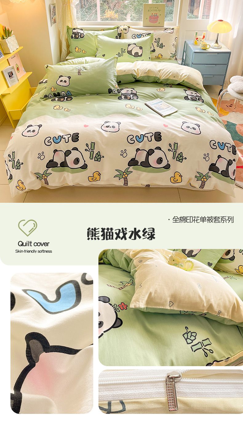 绵庭家纺 2024新款AB版12868全棉印花单枕套 熊猫戏水绿