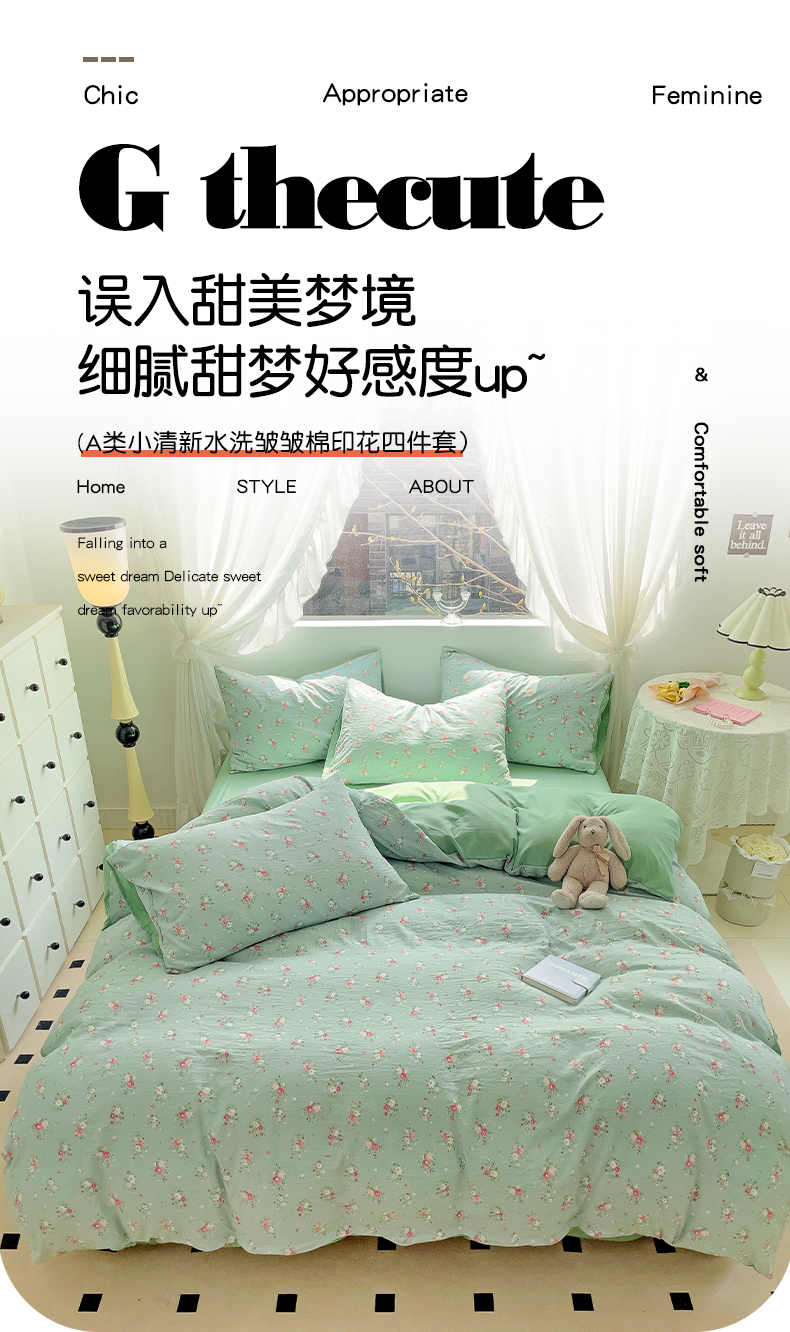 当前位置: 91家纺网 > 商品网购 > 床品套件 > 四件套 > 其它四件套 > 优选良品 2025新款直播爆款母婴级水洗皱皱棉四件套小碎花被套床笠款三件套 温茶