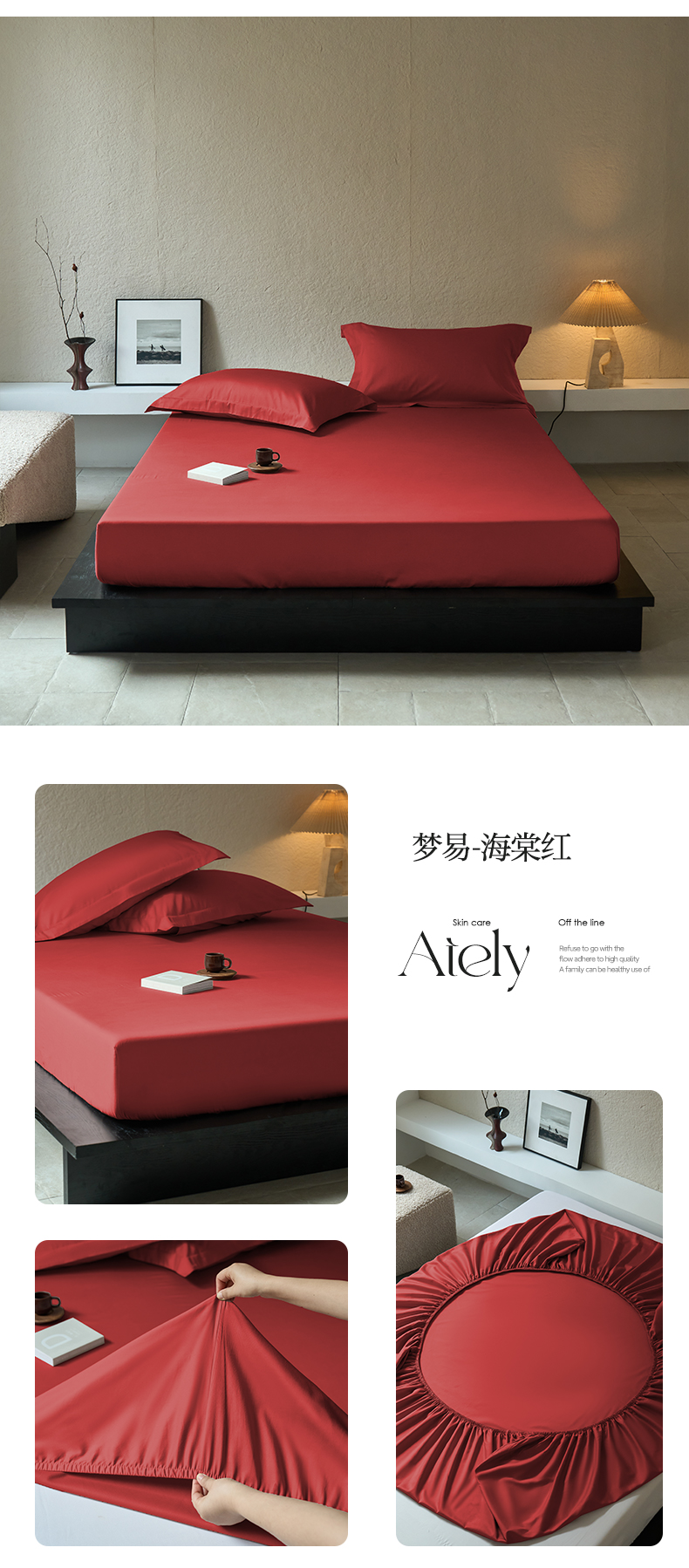 商品名称:秀色家纺 2025新款高端酒店50支贡缎长绒棉床笠单件纯棉全棉贡缎可裸睡单双人床上用品 梦易-海棠红