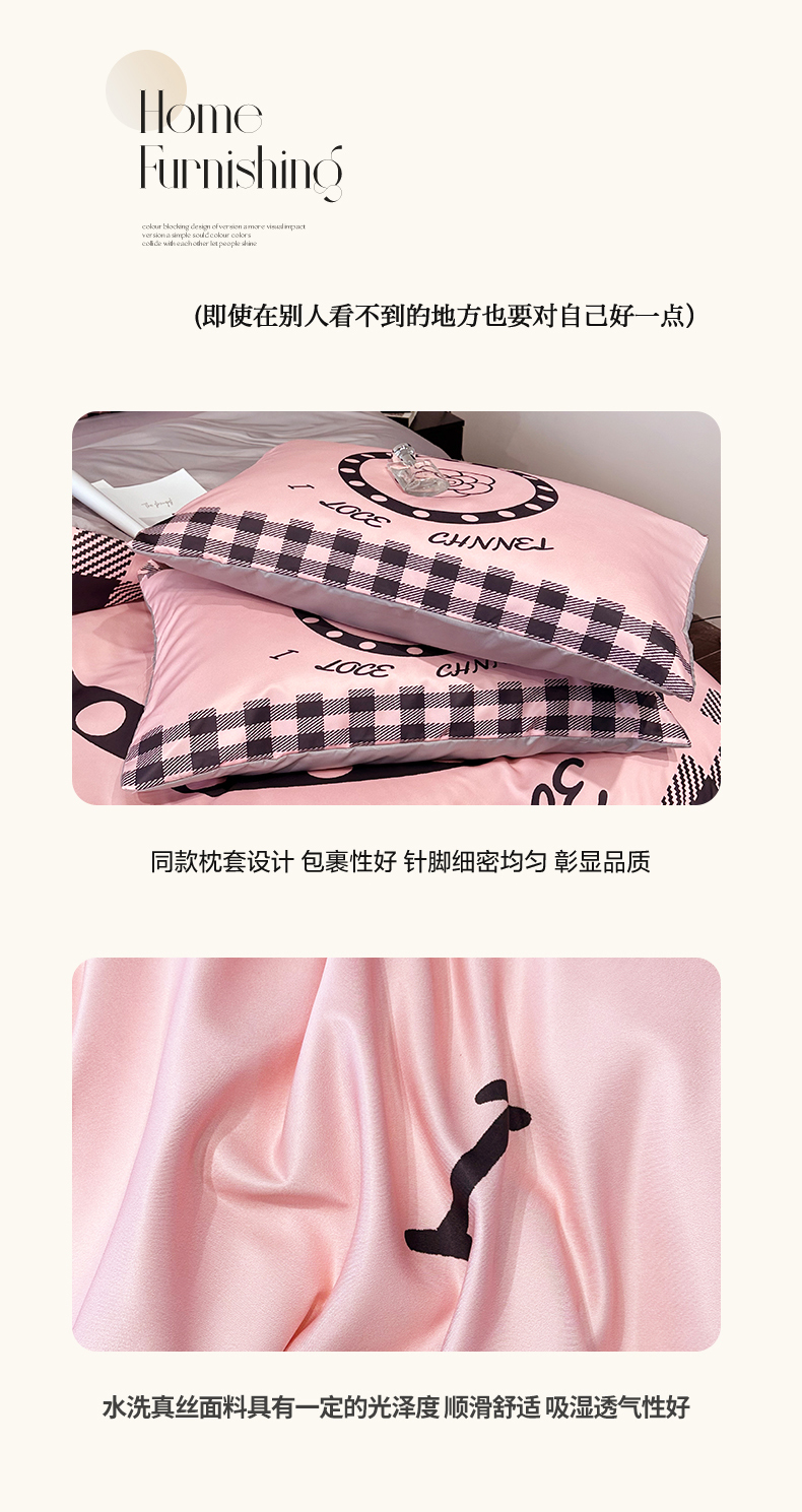 色鬼布艺 2024新款水洗真丝轻奢系列数码印花四件套 可可粉