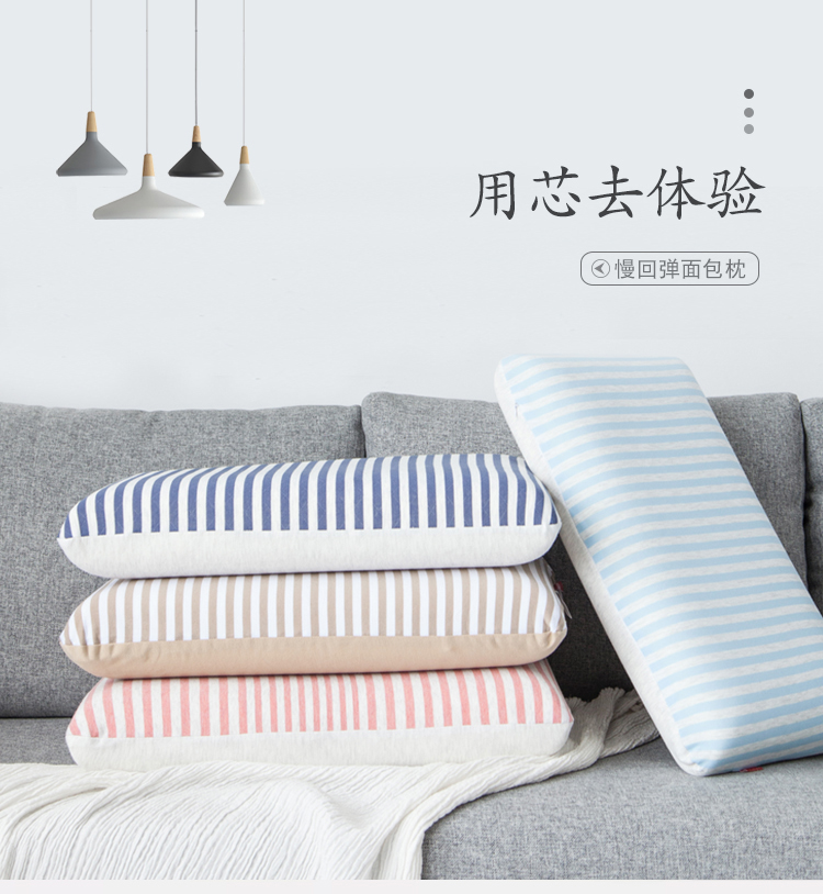11500_2024新款亚马逊慢回弹针织棉记忆枕芯成人面包枕芯保护颈椎枕头枕芯软硬适中枕芯 咖啡条纹
