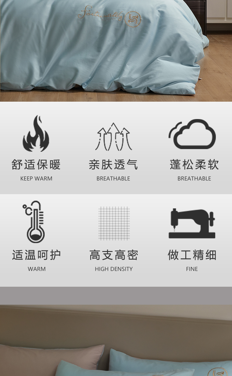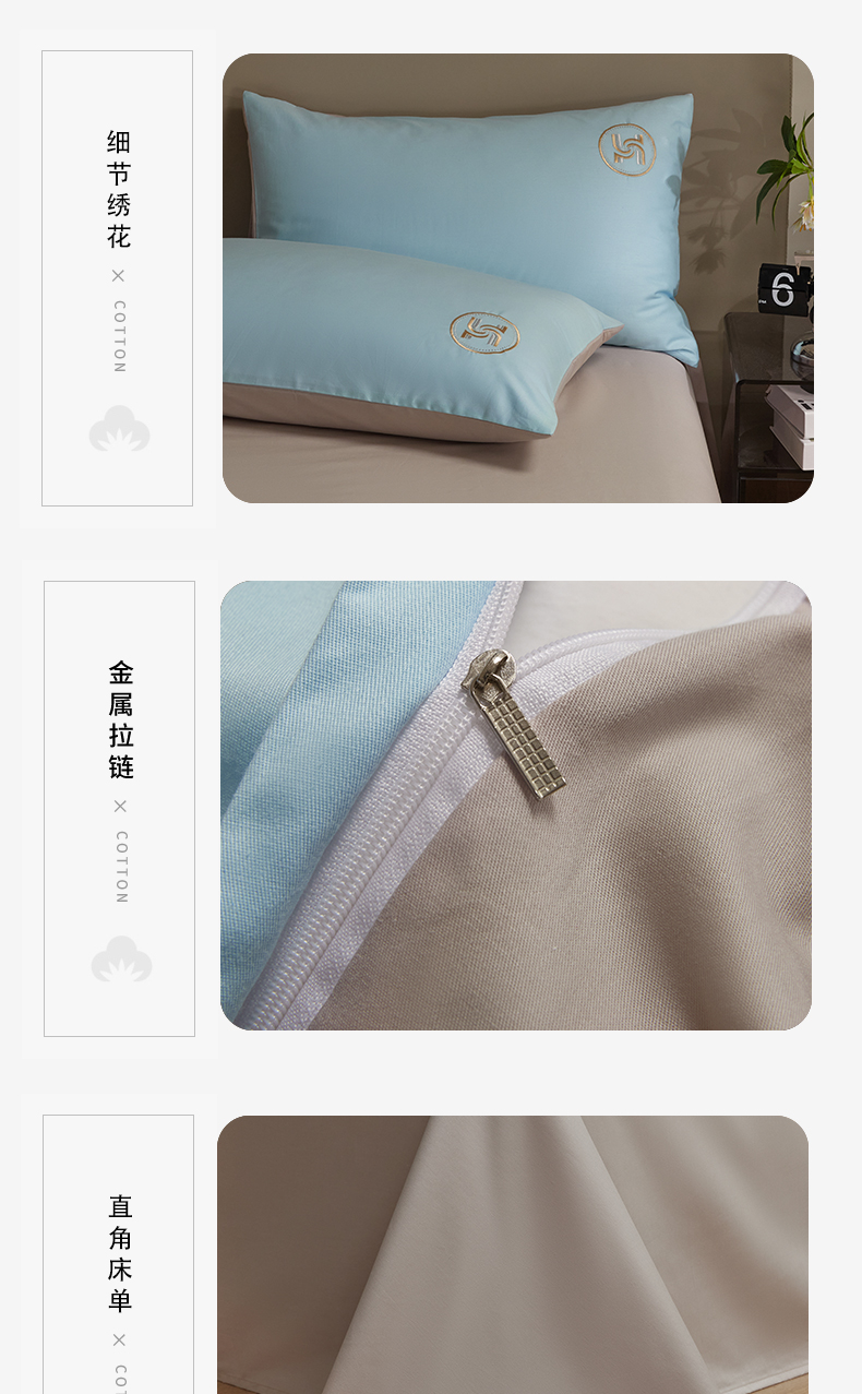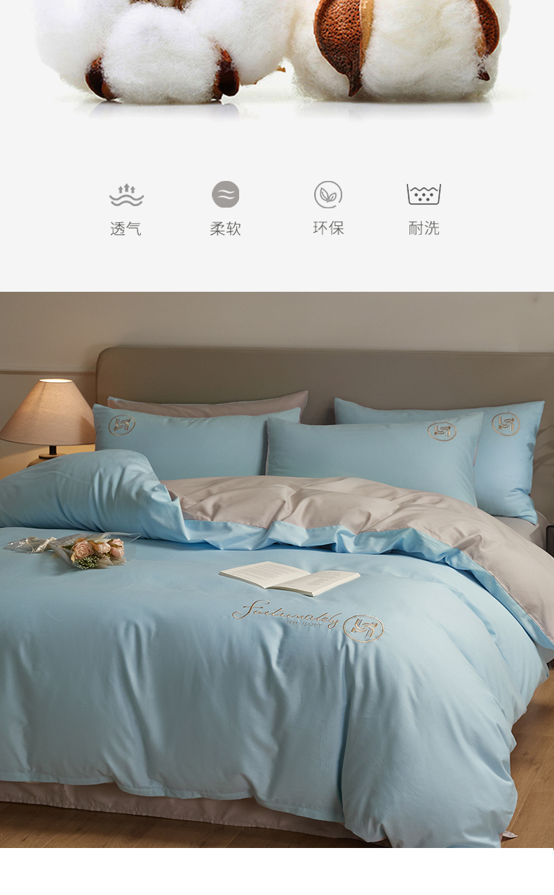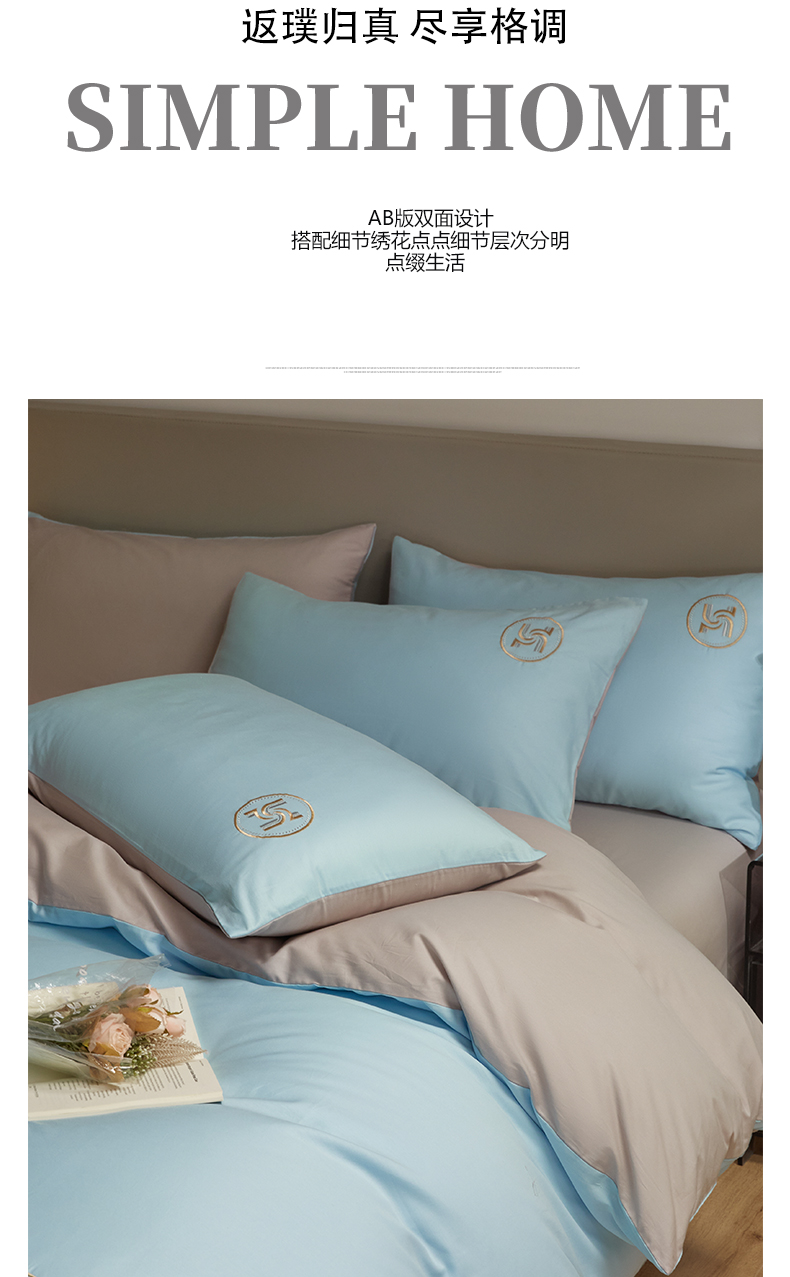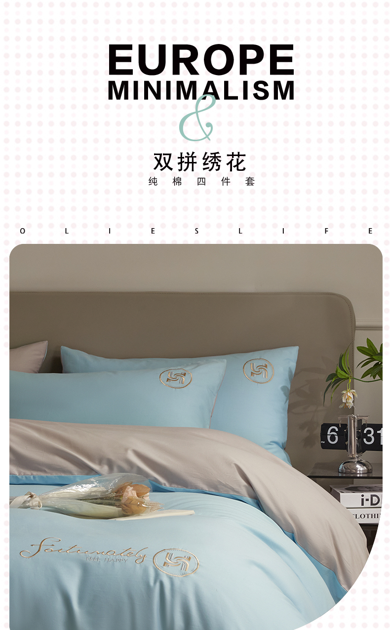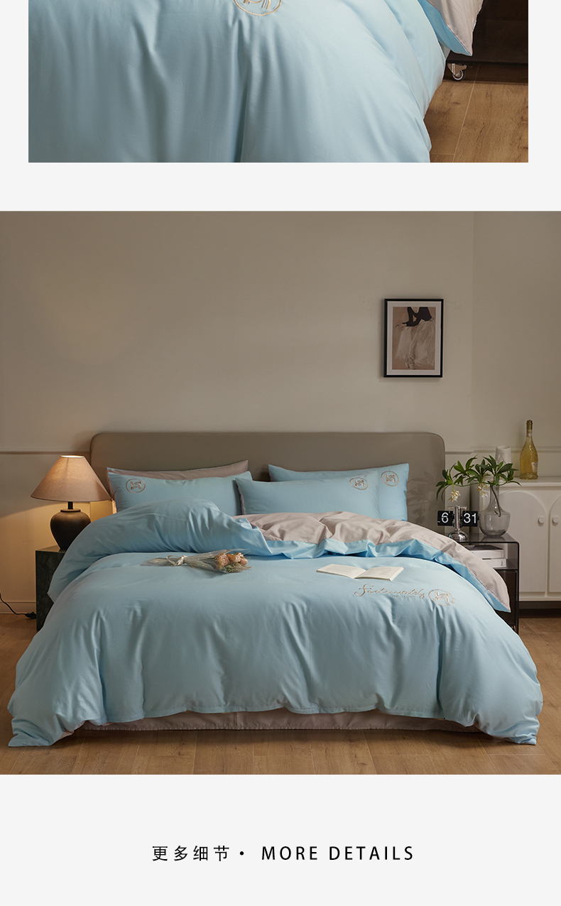 商品名称:梵克保罗 2024新款全棉轻奢纯色双拼刺绣四件套 星空灰