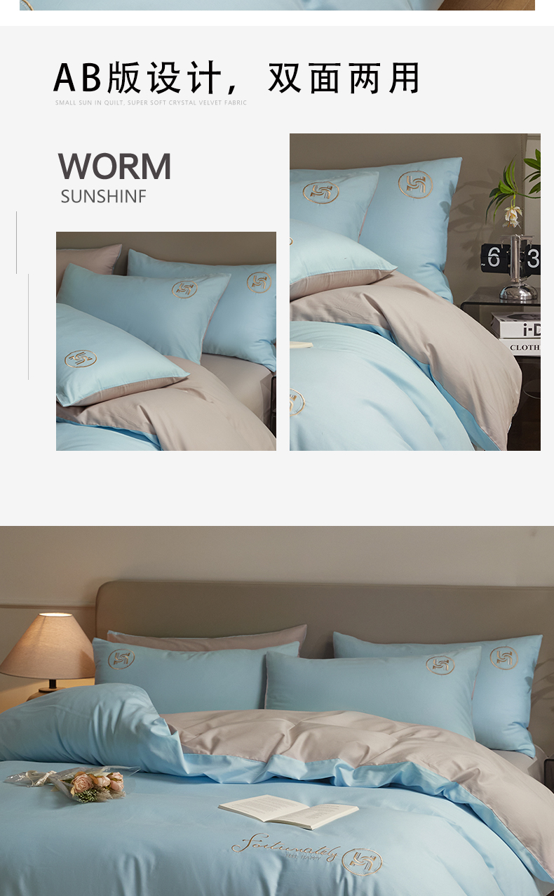 (总)2024新款ins风小红书推荐高克重纯色双拼牛奶绒四件套,莓莓生椰,抹茶芝士,奶白豆沙,奶白拿铁,浅蓝芝士,炭烤起司,芋泥奶紫,月光雾蓝