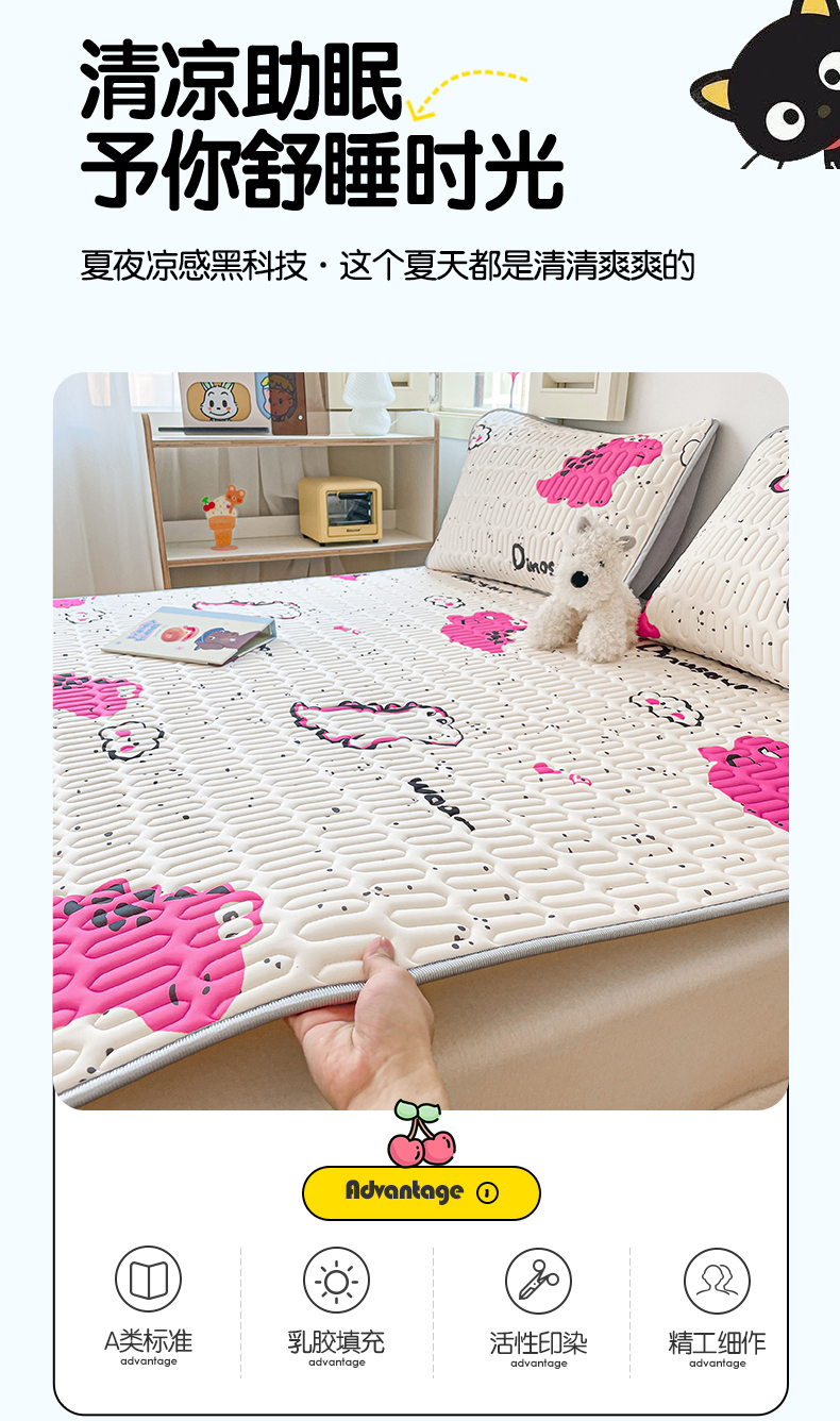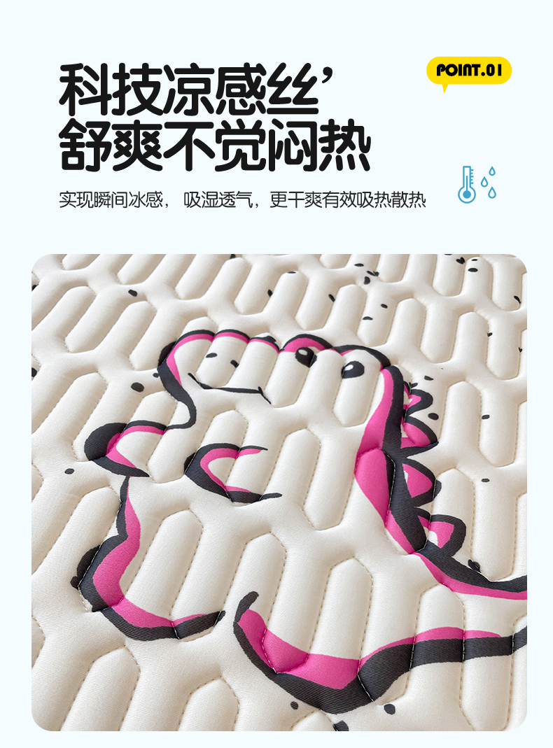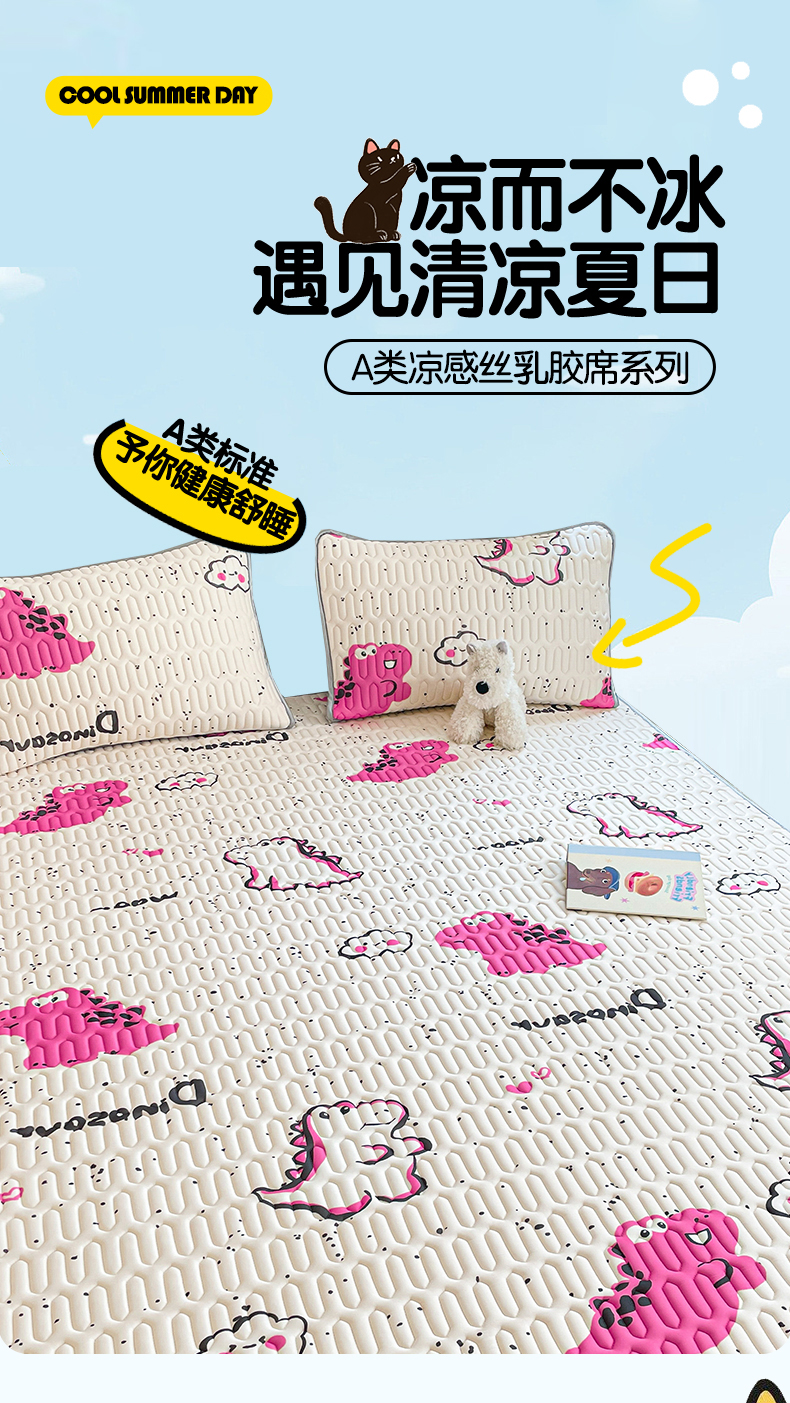 商品名称:布卢姆床垫 2025新款A类凉感丝数码印花小版乳胶凉席5mm 小恐龙