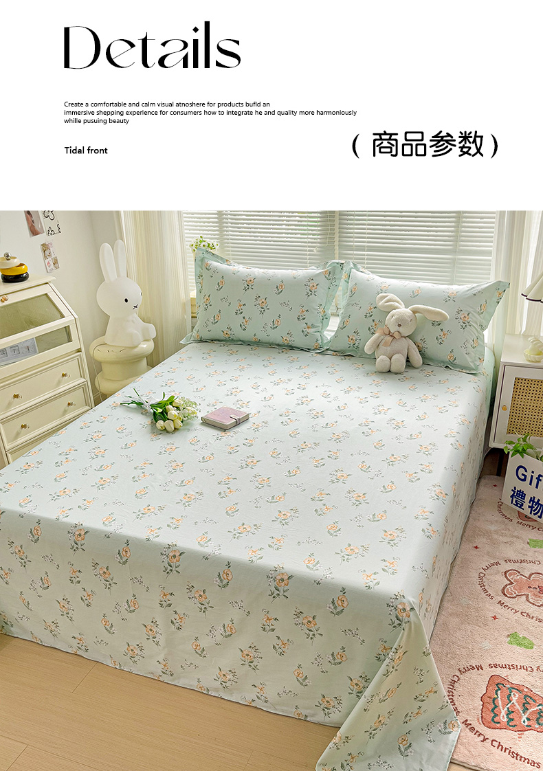商品名称:大柏树 2025新款全棉13376印花四件套系列(可定制)-单床单 浅沫