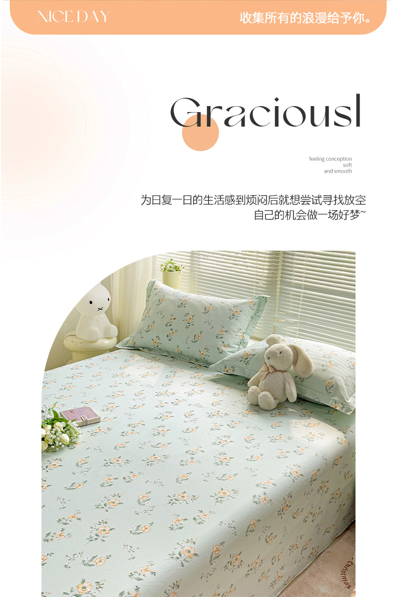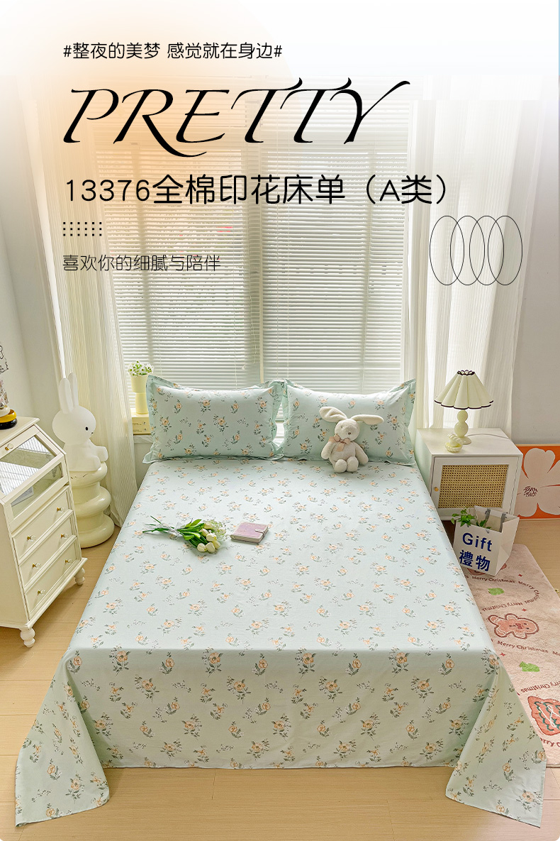 大柏树 2025新款全棉13376印花四件套系列(可定制)-单床单 浅沫