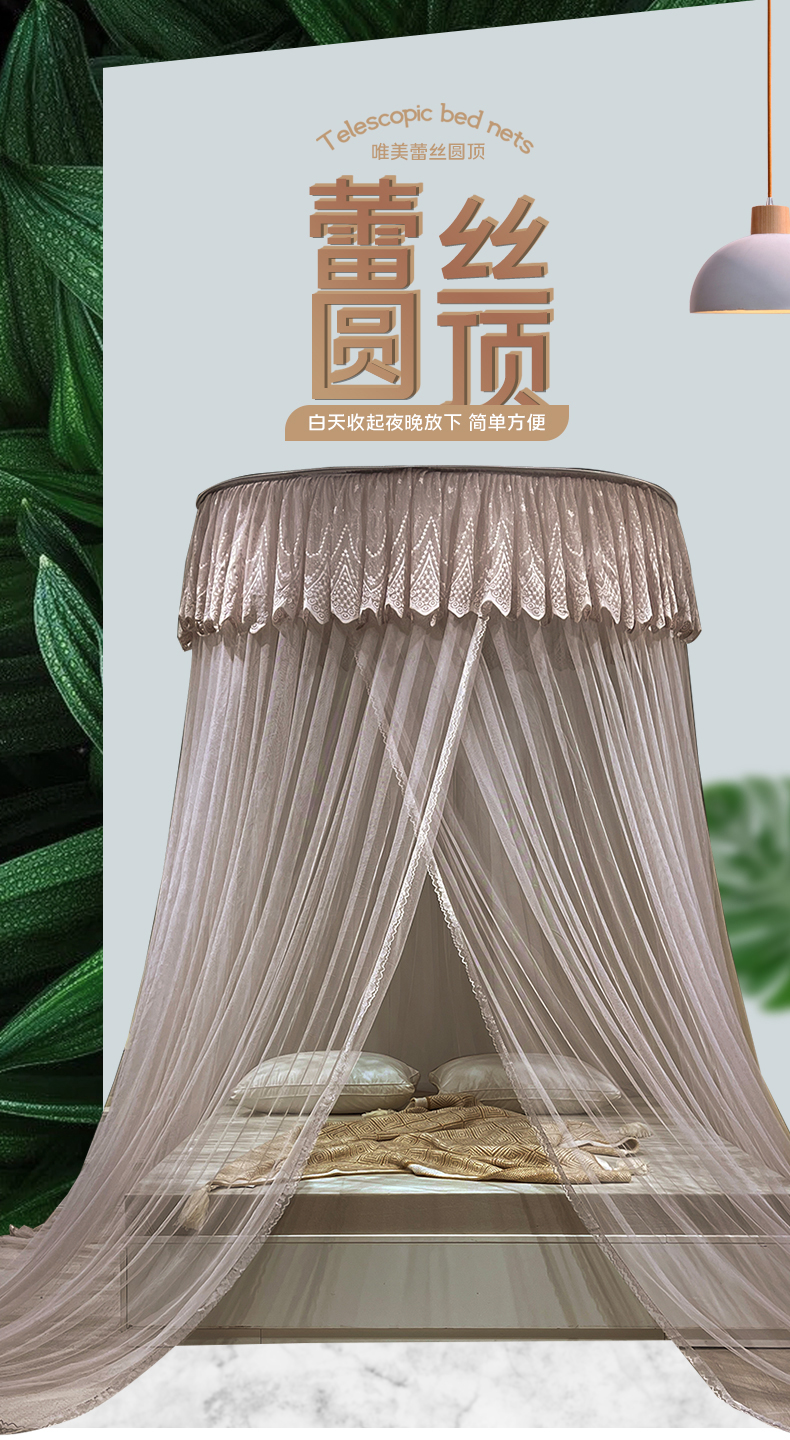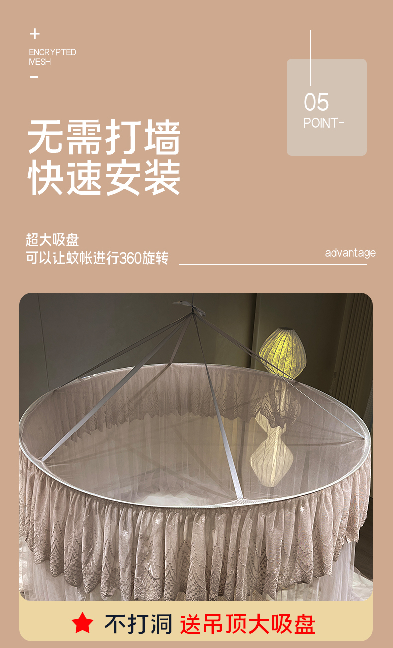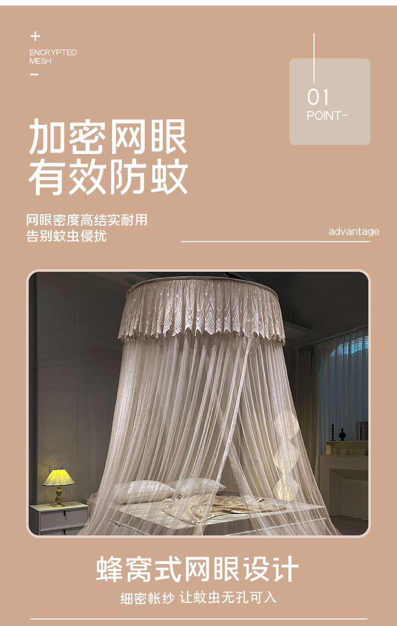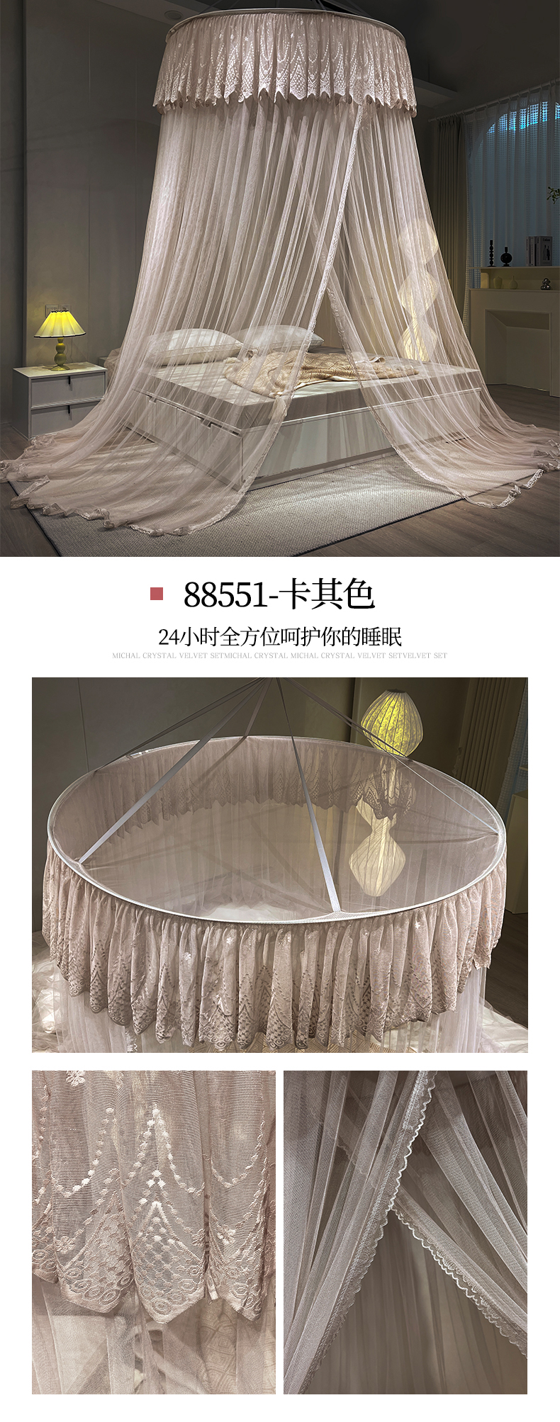 夏彩 2024新款加高加大加密1.5米直径蕾丝大圆顶88551 88551-卡其色
