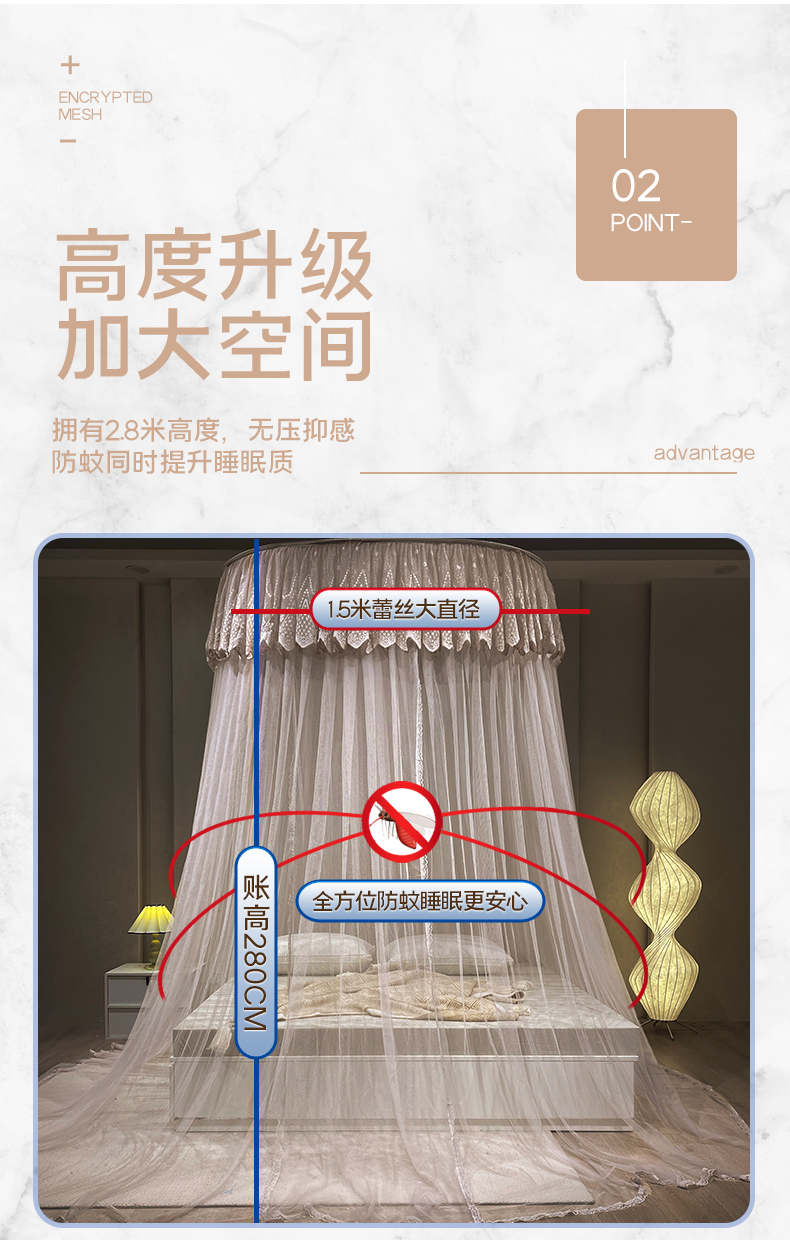 (总)夏彩 2025新款直径加高加密加柔吊顶蚊帐-88621,88621-薄荷绿,88621-浅粉玉,88621-浅蓝灰,88621-雅士白