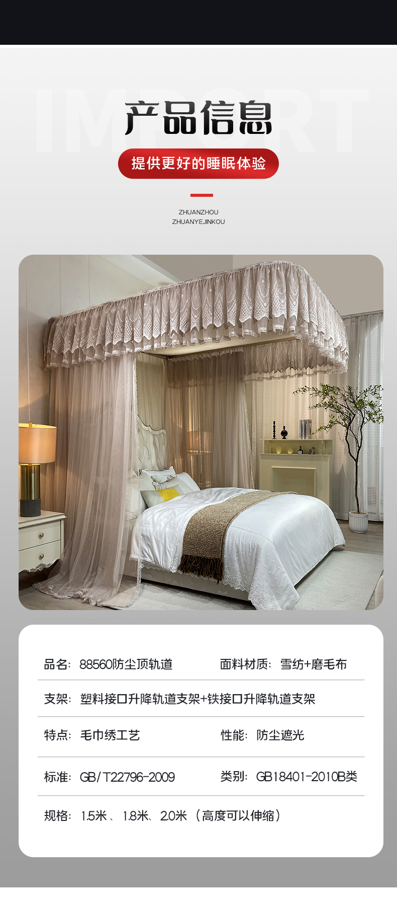 当前位置: 91家纺网 > 商品网购 > 床上用品 > 蚊帐 > 导轨蚊帐 > 夏彩 2024新款88560防尘顶轨道系列蚊帐 88560-卡其色