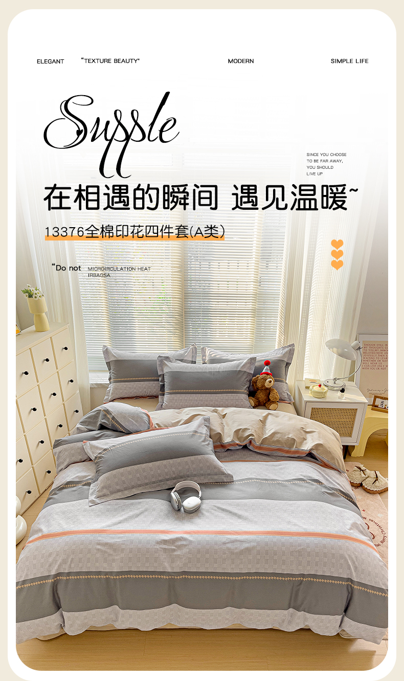 当前位置: 91家纺网 > 商品网购 > 床品套件 > 四件套 > 全棉普通四件套 > 大柏树 2025新款全棉13376印花四件套系列(可定制)-床单四件套 罗伊
