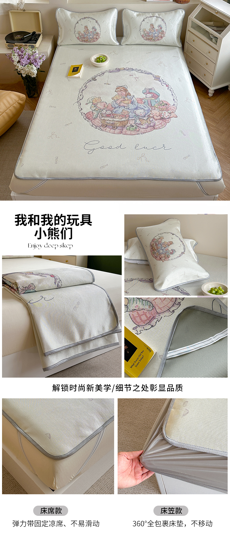 当前位置: 91家纺网 > 商品网购 > 床上用品 > 凉席 > 冰丝席 > 萝莉家纺 2024新款大版冰丝凉席床席床笠款 我和我的玩具小熊们-平席款