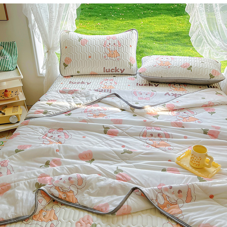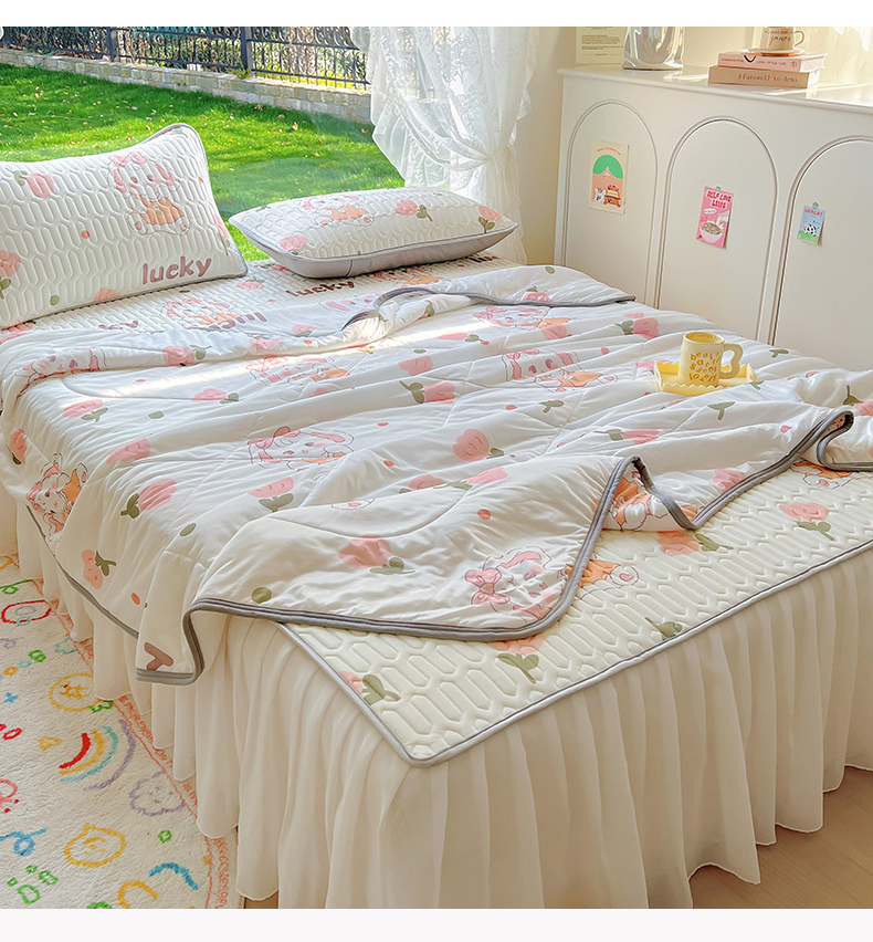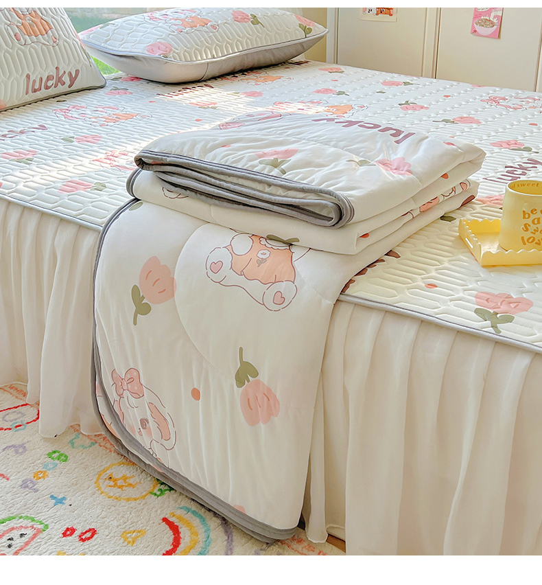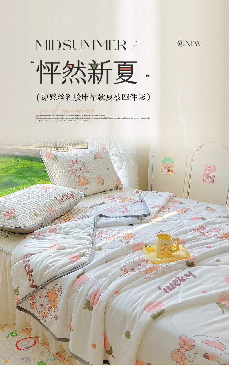 当前位置: 91家纺网 > 商品网购 > 床品套件 > 四件套 > 全棉普通四件套 > 柒月家居 2024新款印花小清新款乳胶凉床裙席床裙夏被四件套 花花萌兔