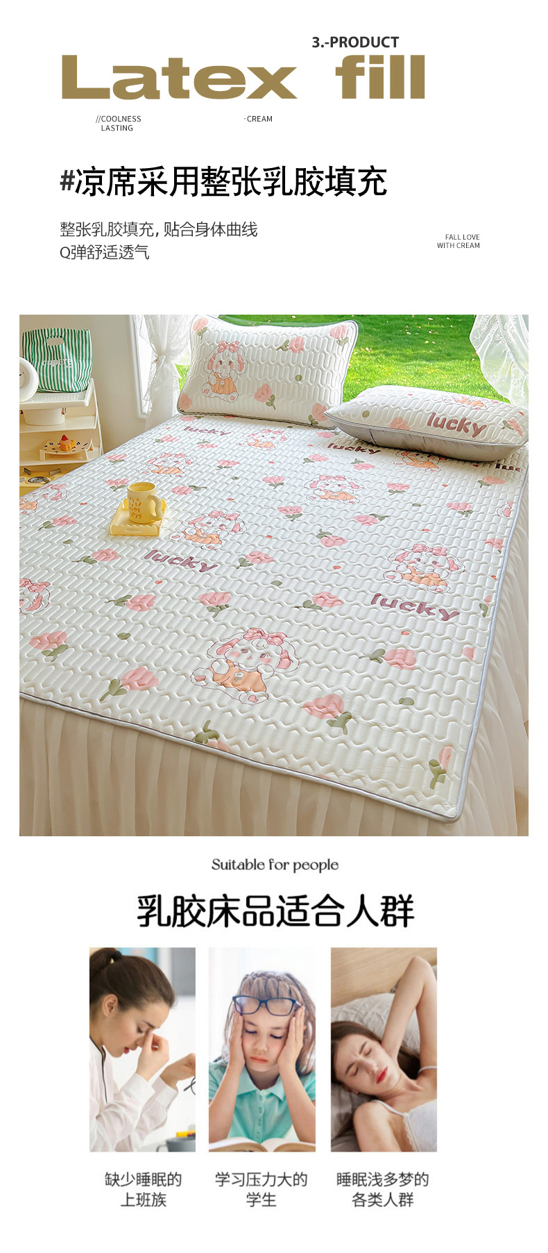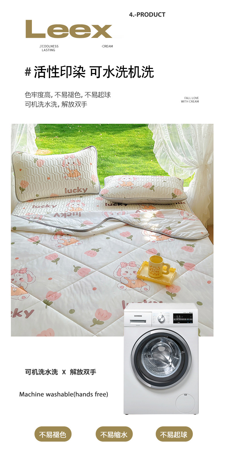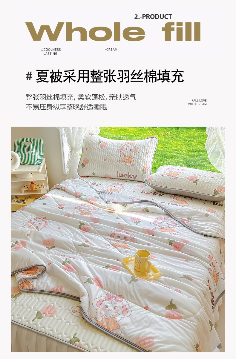 当前位置: 91家纺网 > 商品网购 > 床品套件 > 四件套 > 全棉普通四件套 > 柒月家居 2024新款印花小清新款乳胶凉床裙席床裙夏被四件套 花花萌兔