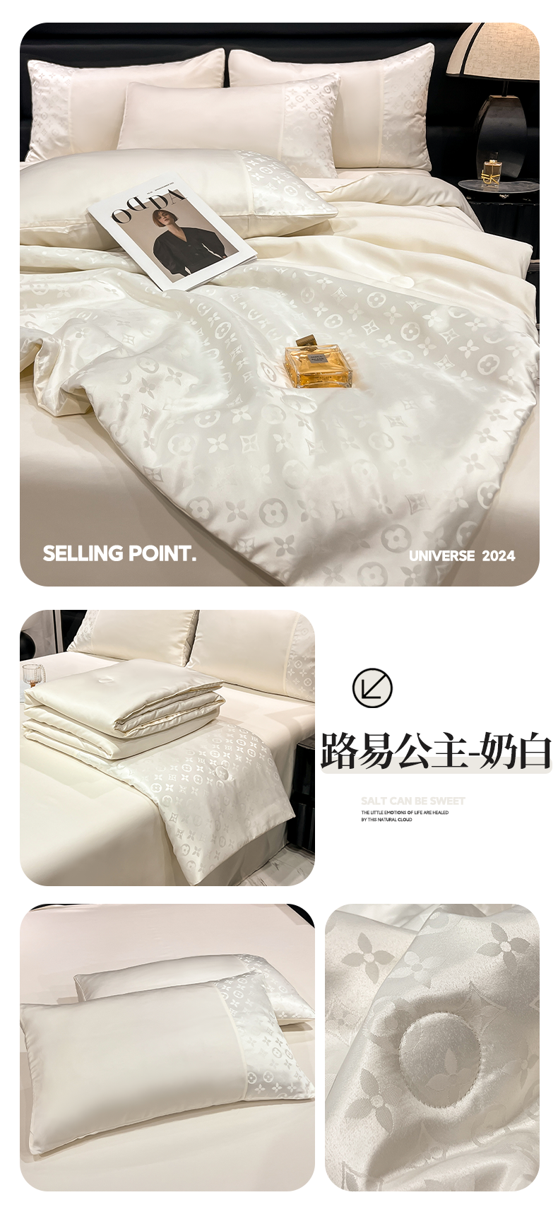 • 91家纺网 家纺一手货源 找家纺 梦之岛 2024新款水洗真丝提花空调被夏被四件套-路易公主 路易公主-奶白