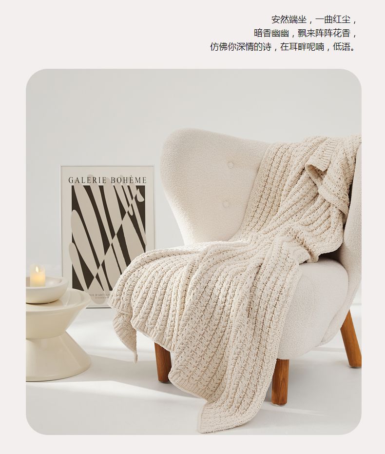 (总)暖绵绵家纺 2025新款柔软百搭简约家居针织毯-阿黛,阿黛-白色