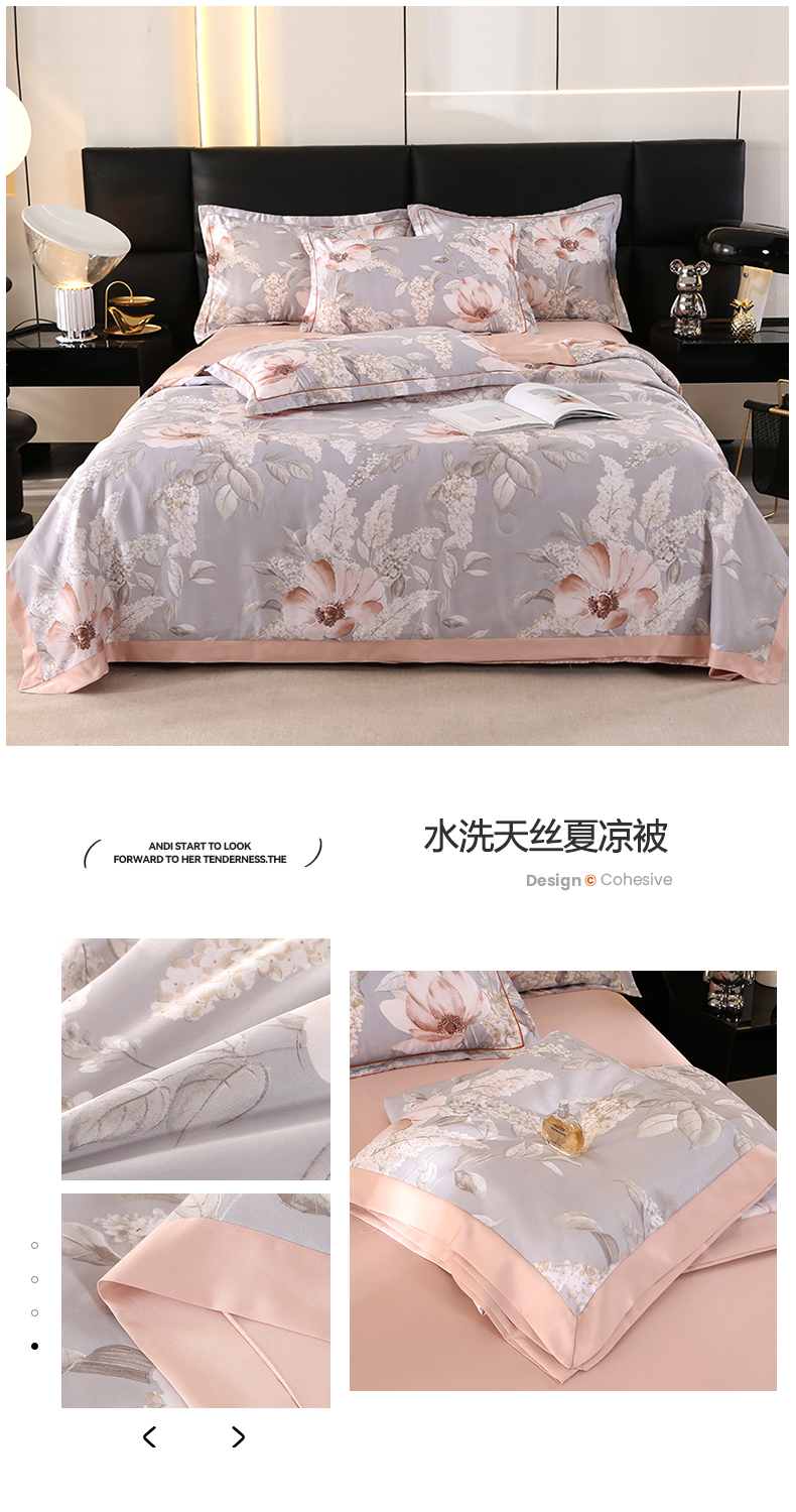 商品名称:梦莱斯 2024新款拼角宽边水洗天丝夏被四件套 花颜灰