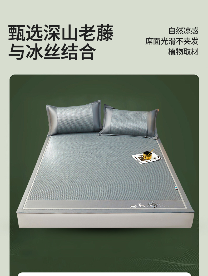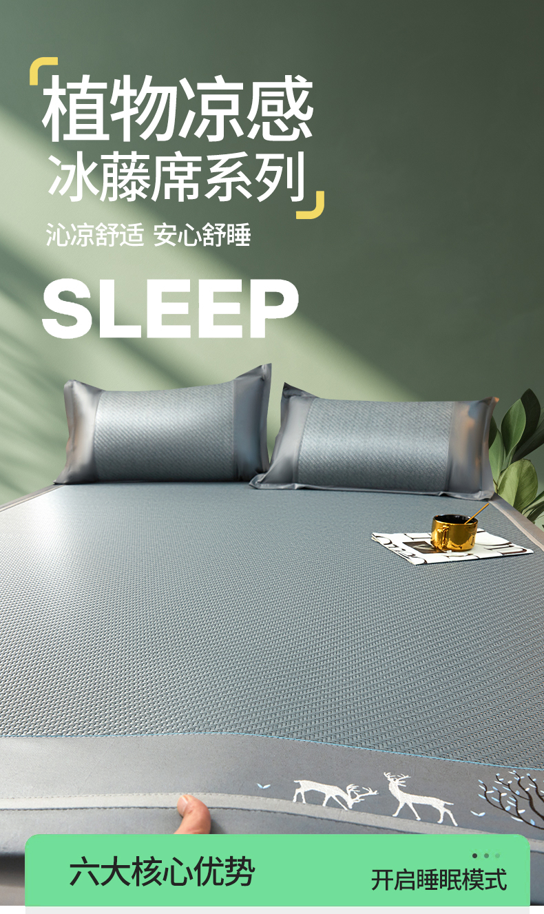商品名称: 恒爱 2024新款冰藤凉席 小鹿-蓝灰