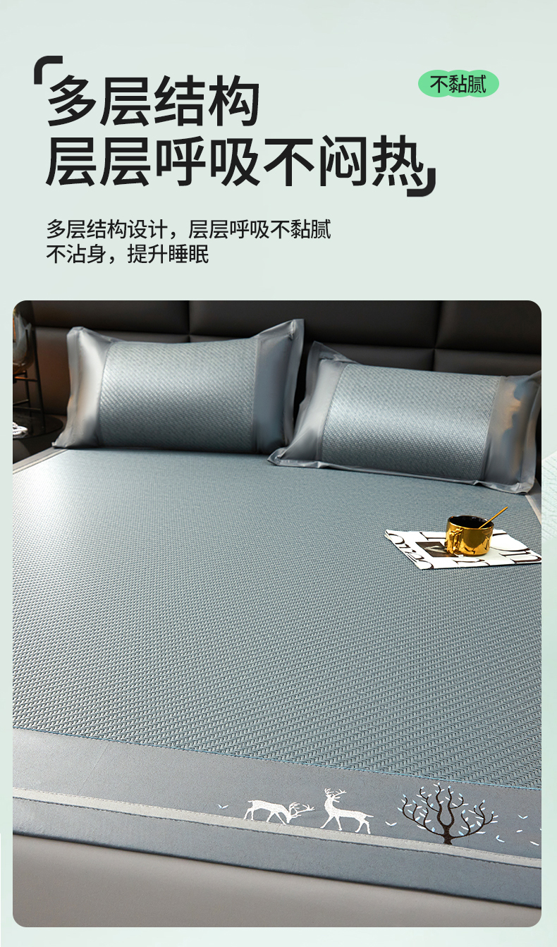 恒爱 2024新款冰藤凉席 小鹿-蓝灰