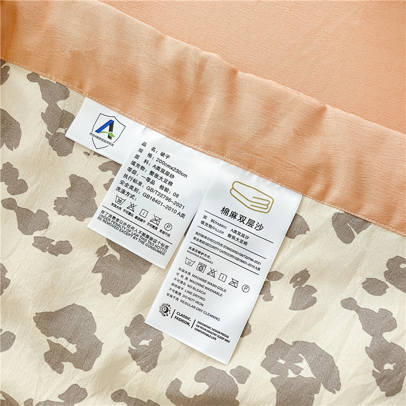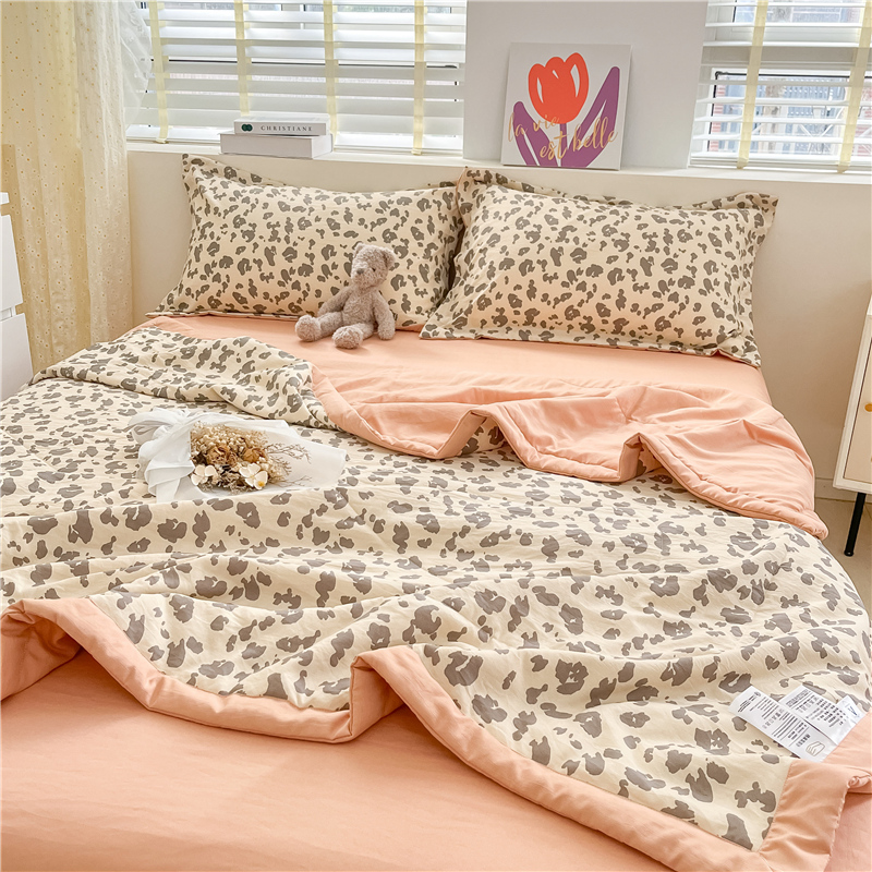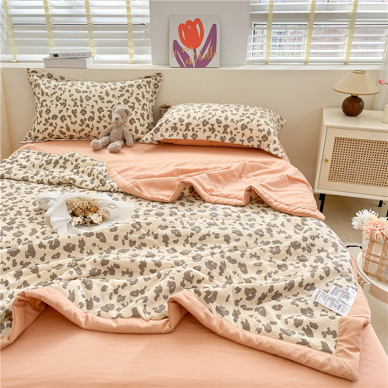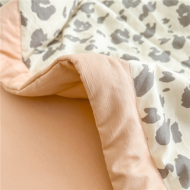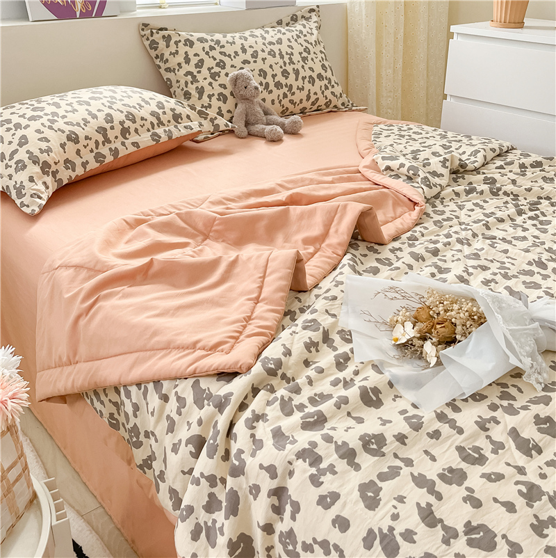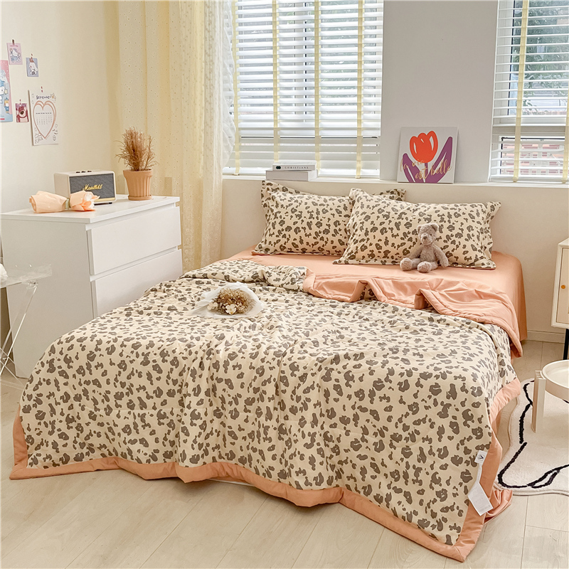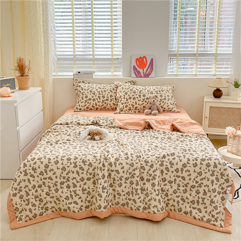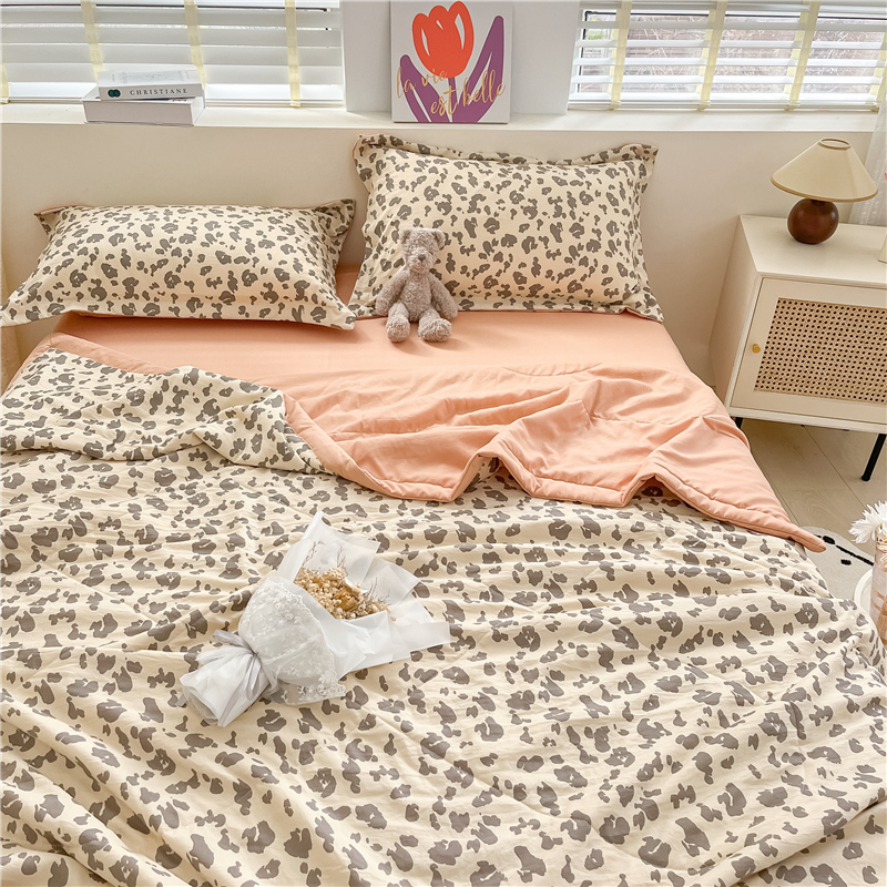 • 91家纺网 家纺一手货源 找家纺 梵克保罗 2024新款春夏水洗棉麻双层纱夏被四件套 简约豹纹