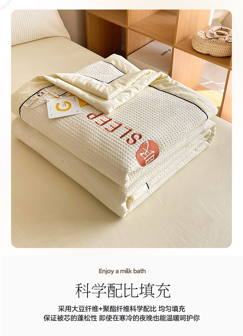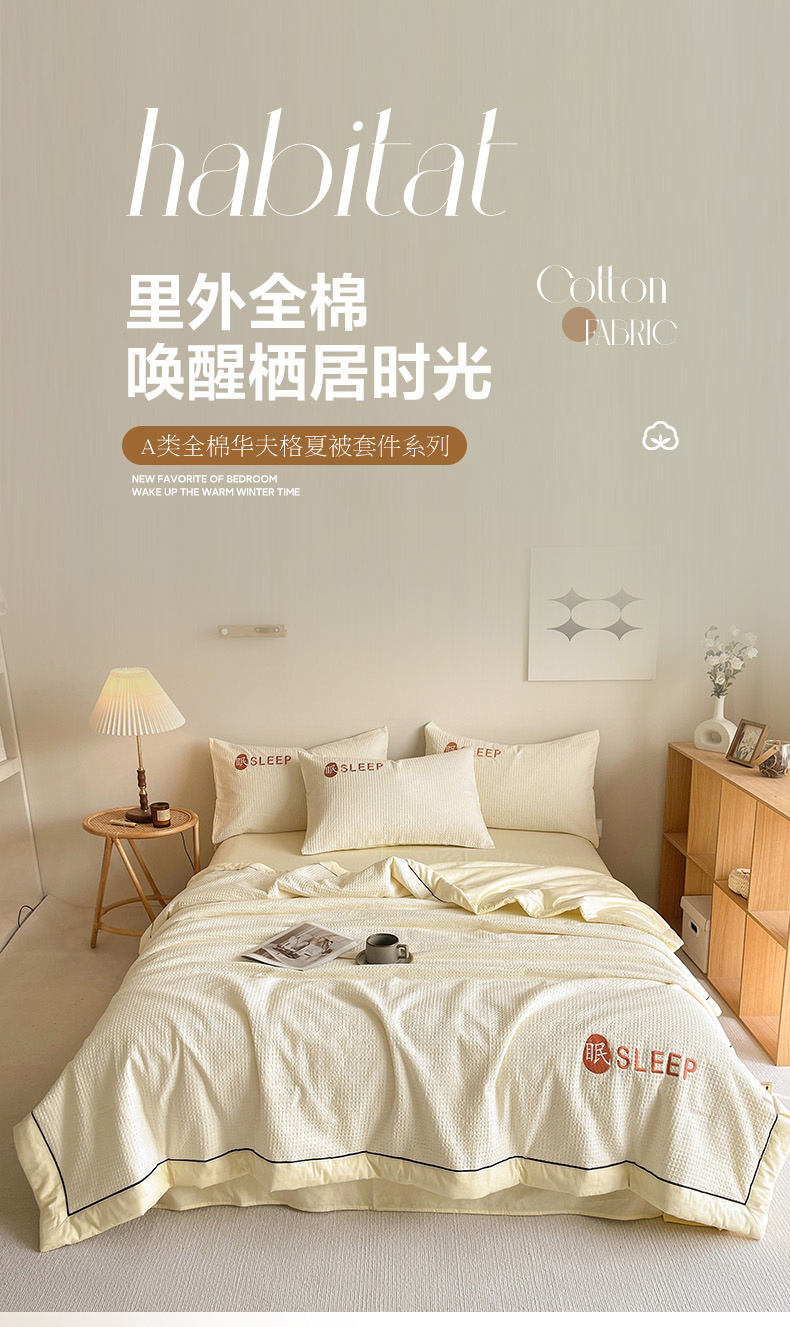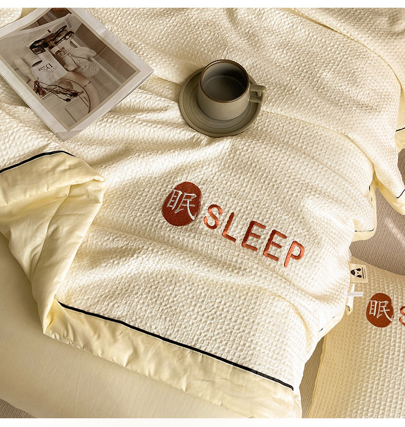 • 91家纺网 家纺一手货源 找家纺 眠博士 2024新款A类全棉华夫格拼角夏被套件系列 夏被-珍珠白