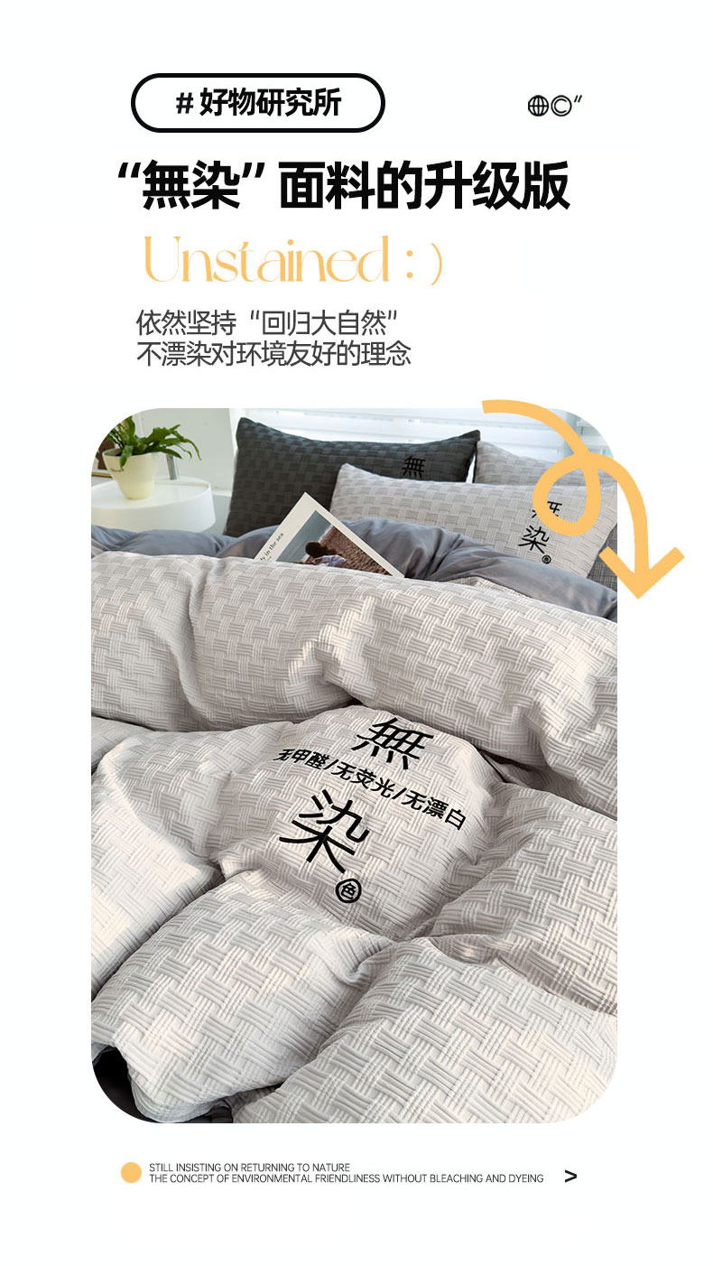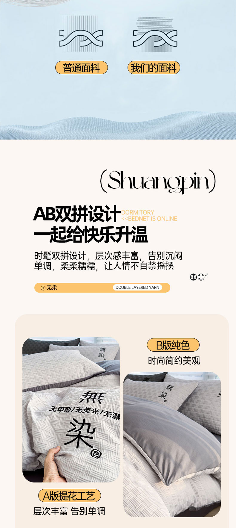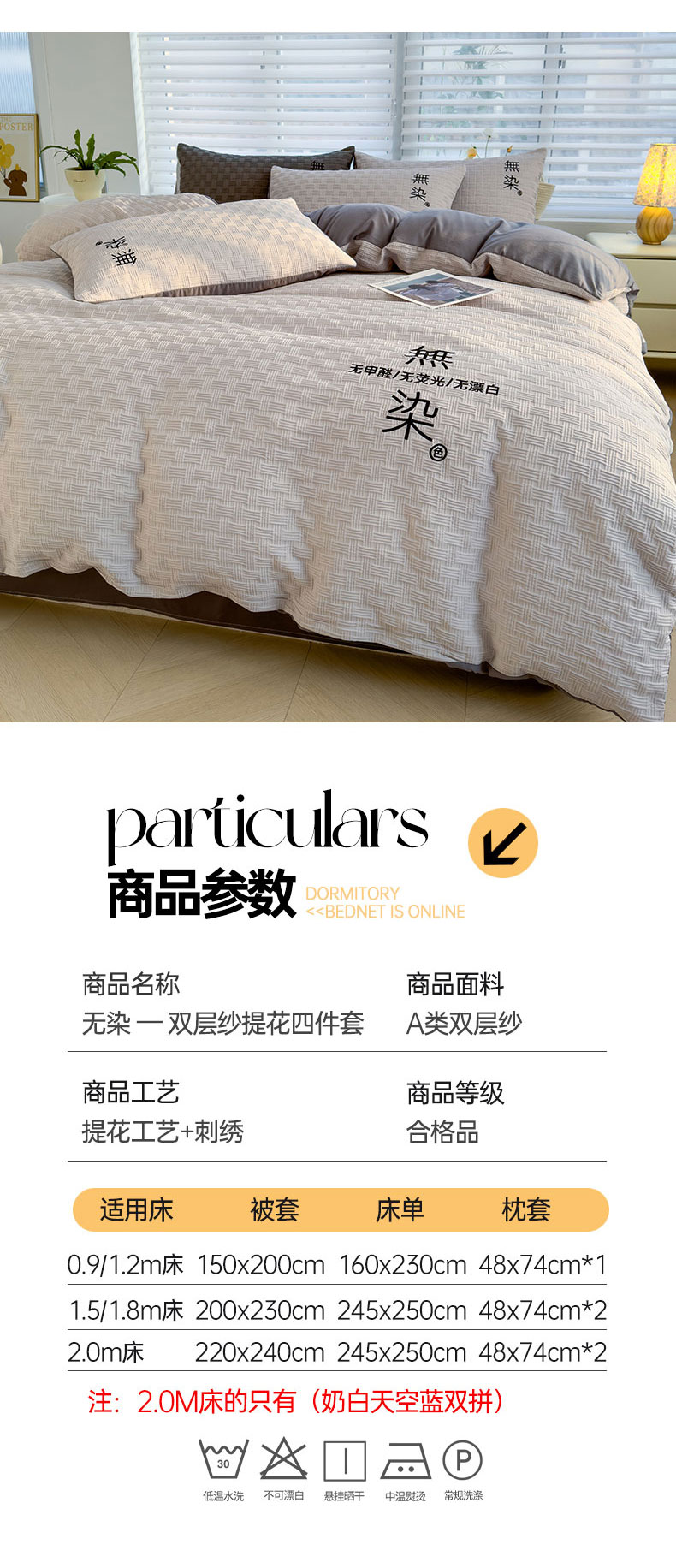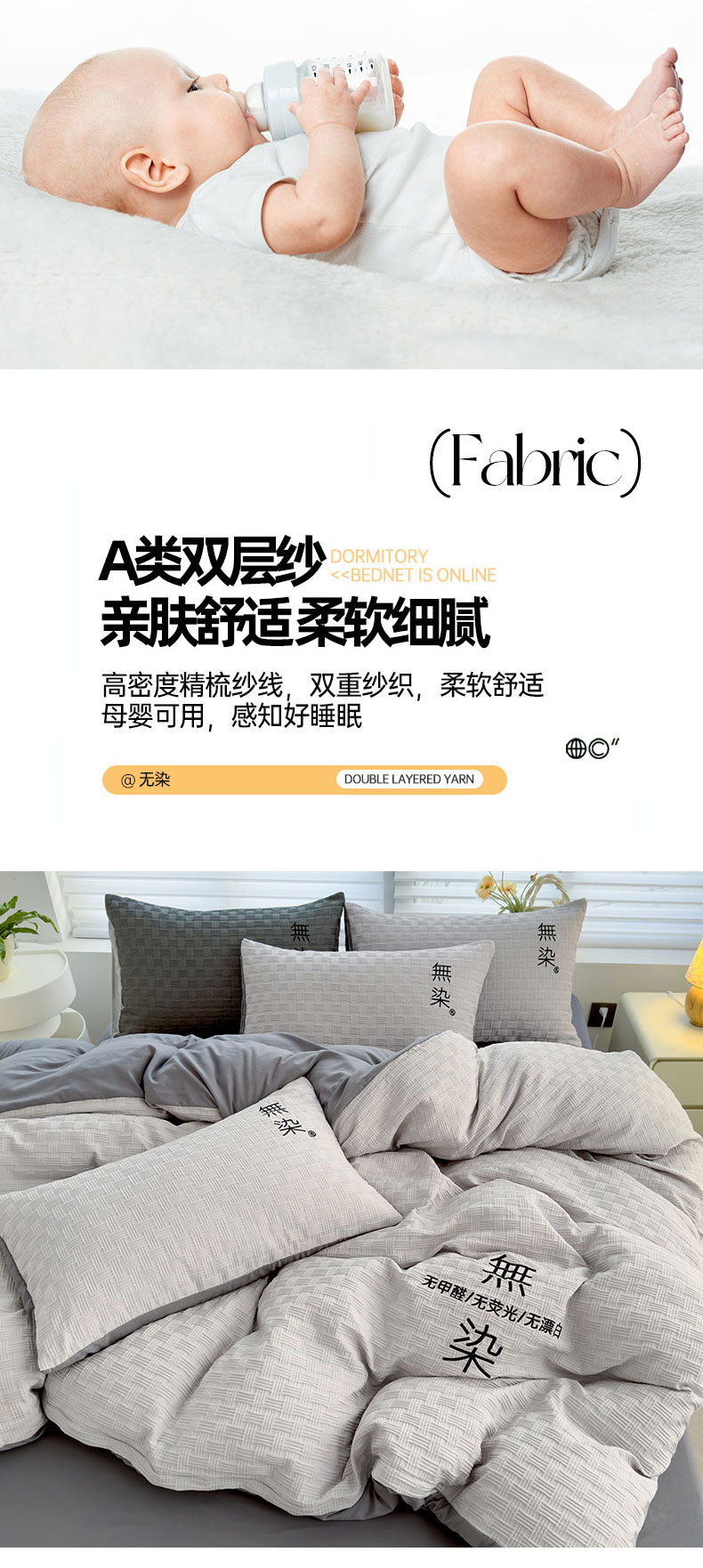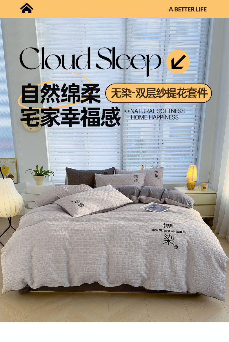 当前位置: 91家纺网 > 商品网购 > 床品套件 > 四件套 > 提花四件套 > 灰鲸 2025新款A类双层纱无染提花四件套 无染纳多灰山灰双拼