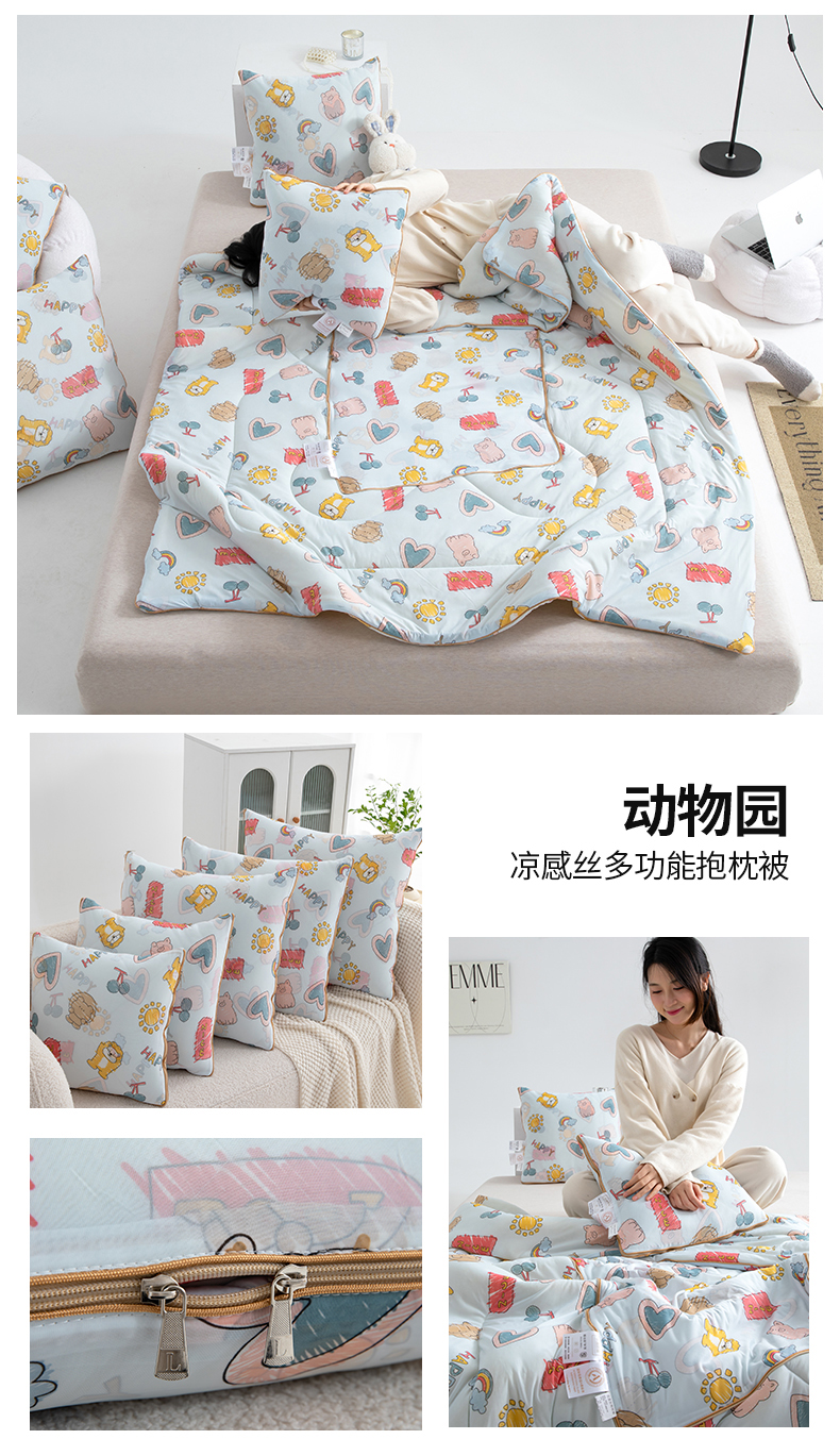 商品名称:照世 2025新款凉感丝印花抱枕被 动物园