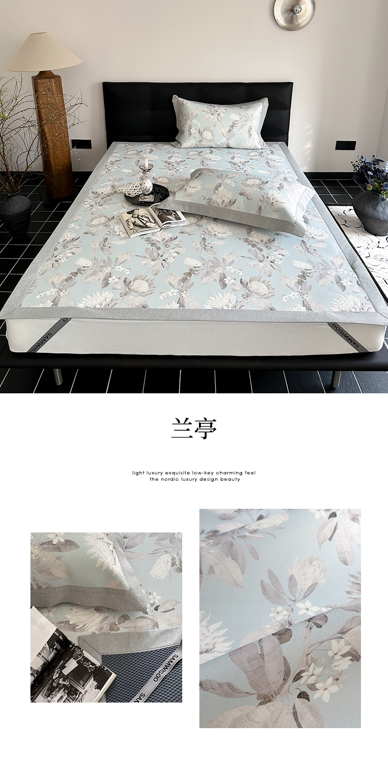 商品名称:三味舒屋 2026新款凉感抗菌防螨印花冰丝养生席手绘系列【花卉】床席款 兰亭