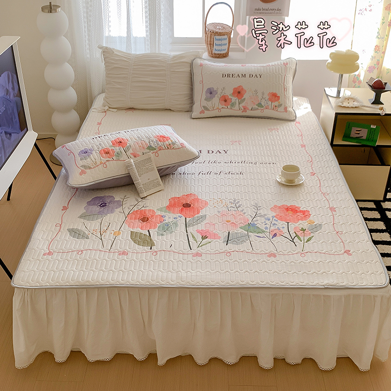 顾里家纺 顾里家纺 2024新款凉感丝数码印花INS风大版凉席三件套 晕染花花