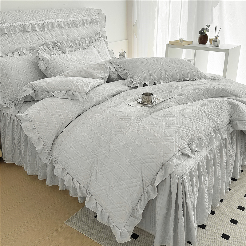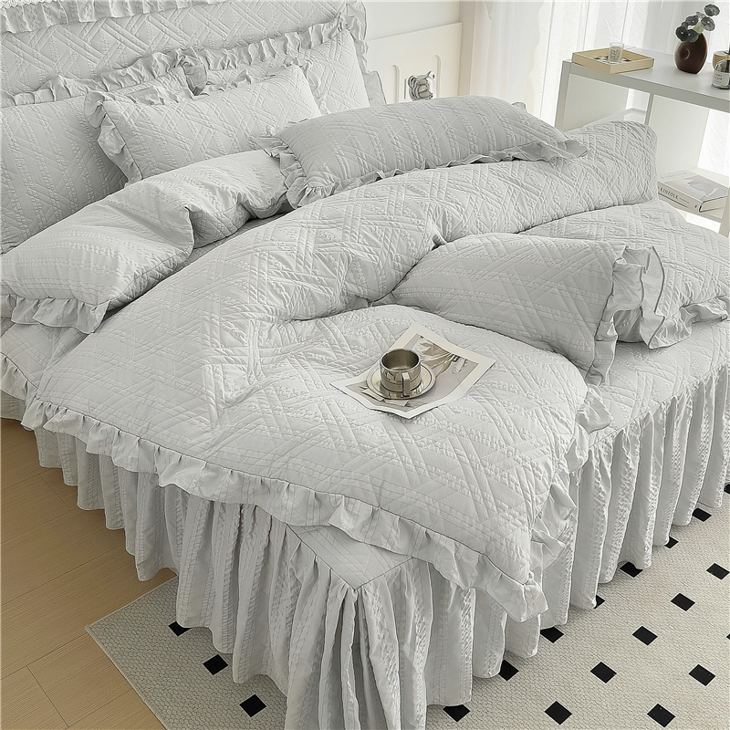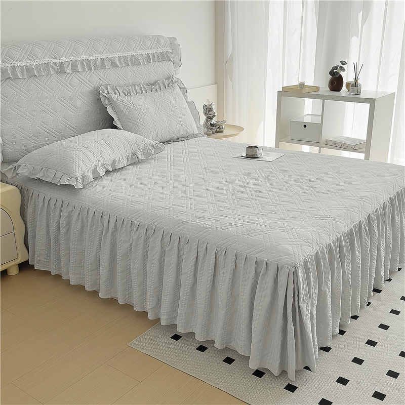 十个点 2024新款亲肤水洗泡泡棉夹棉绗缝床裙款单品及套件 银灰