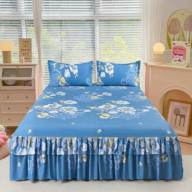 当前位置: 91家纺网 > 商品网购 > 床品套件 > 三件套 > 小雨家纺 2026新款芦荟棉床裙三件套 花枝招展-兰