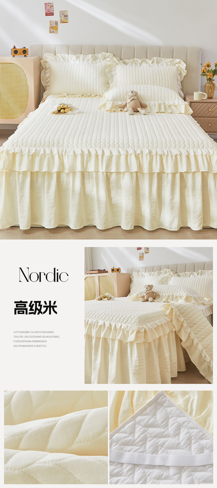 商品名称:2025ins秘密花园镂空泡泡玛卡龙色系水洗棉加厚床裙 高级米