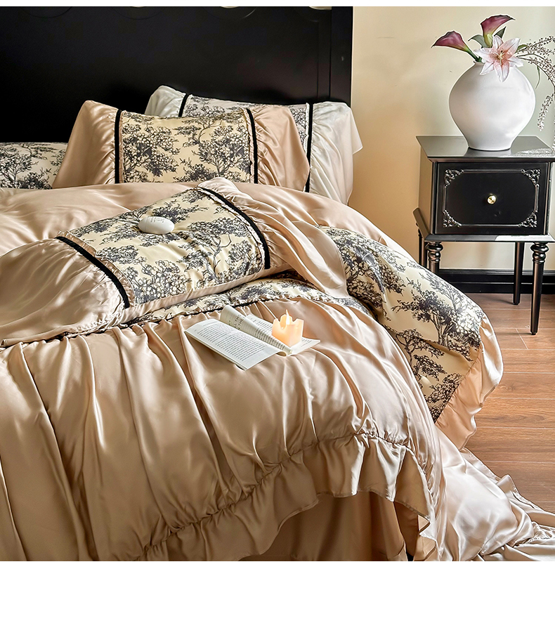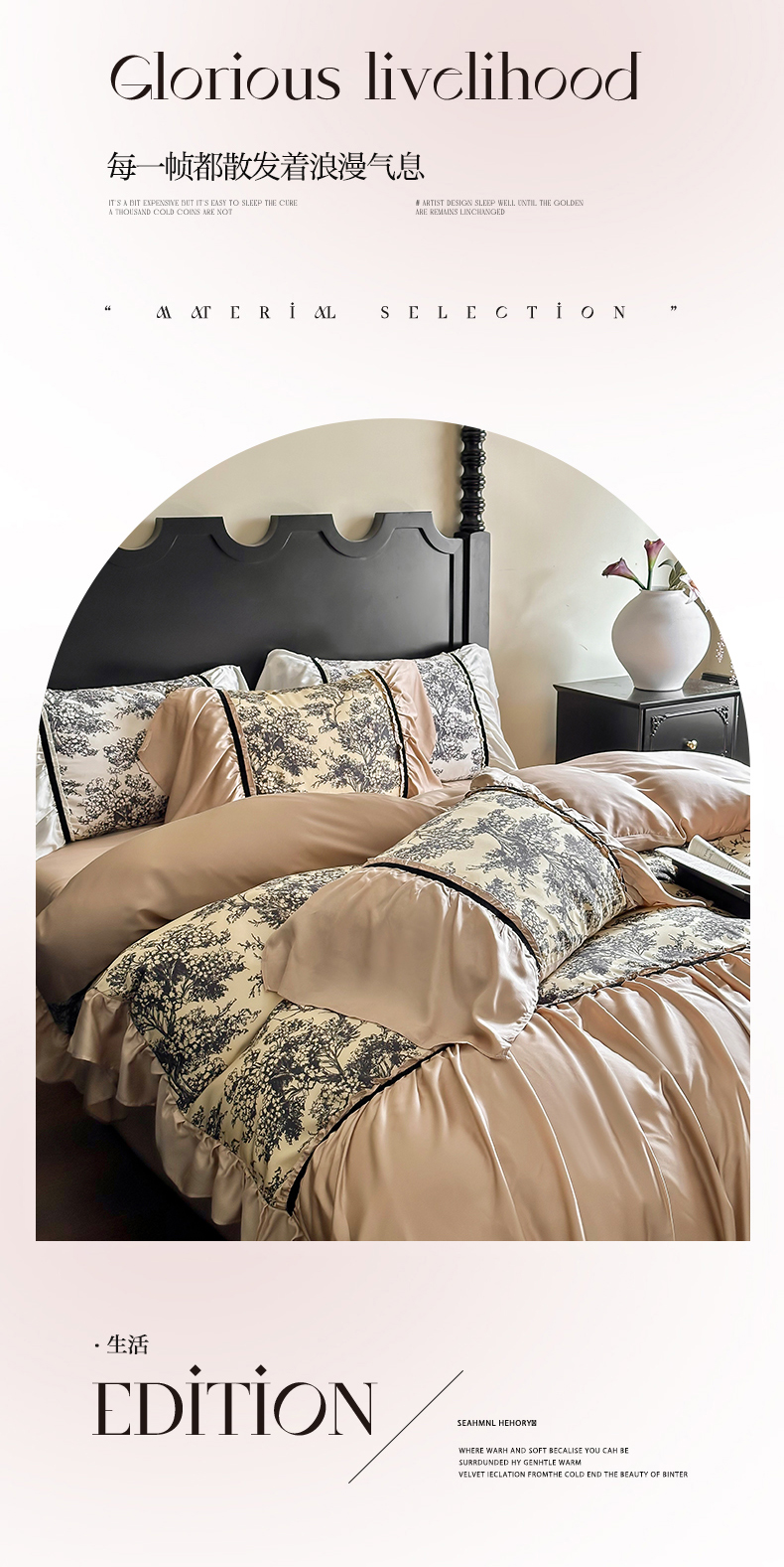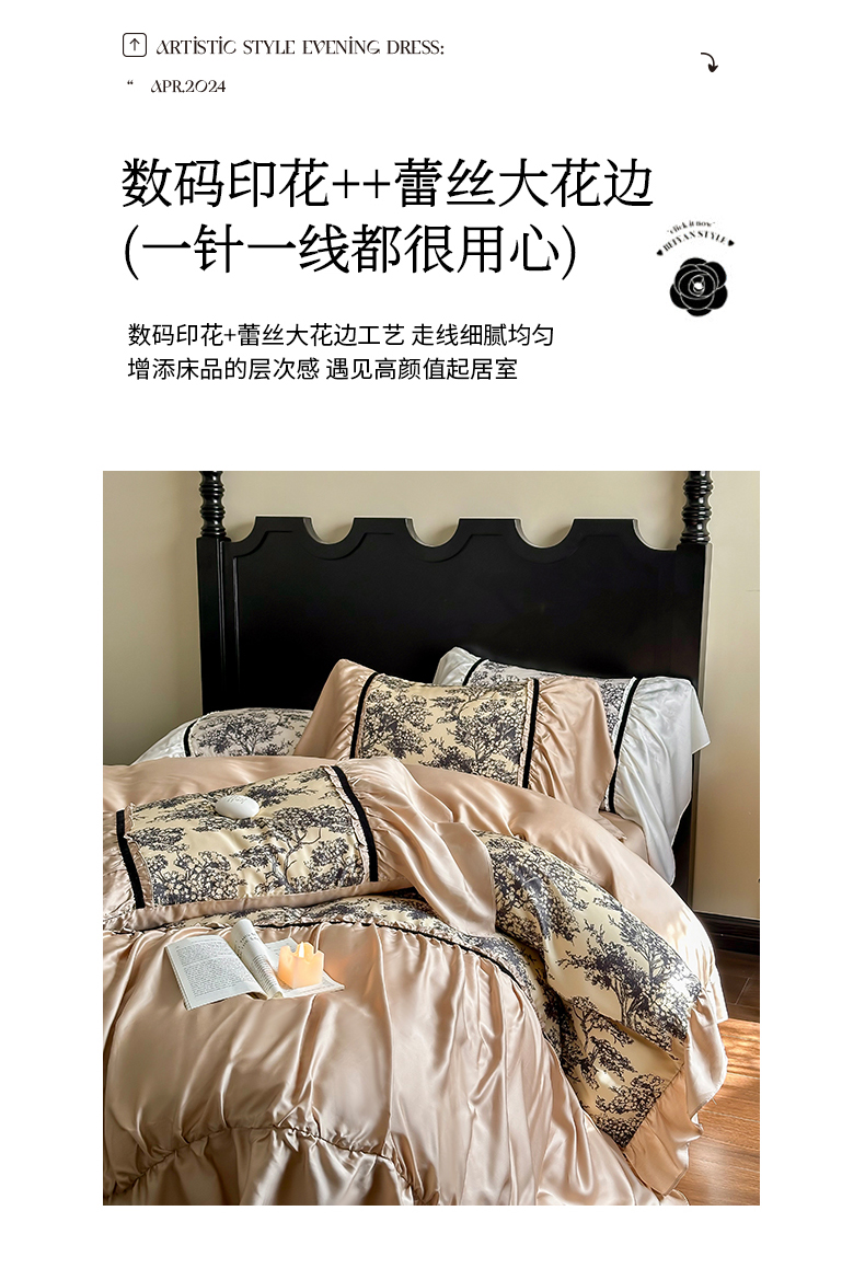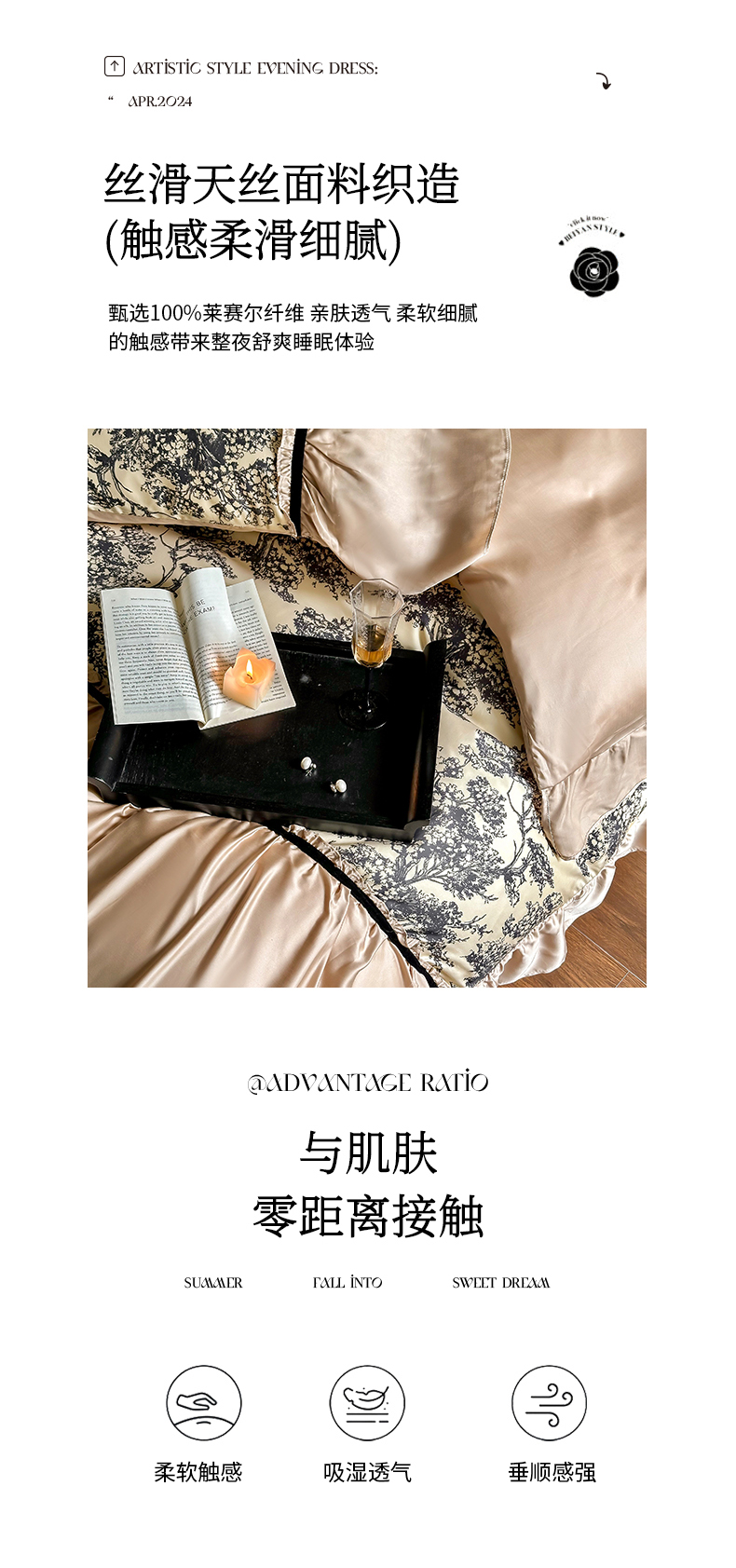 黛舒家居 2024新款60s兰精天丝数码印花四件套-杨树林 杨树林-棕