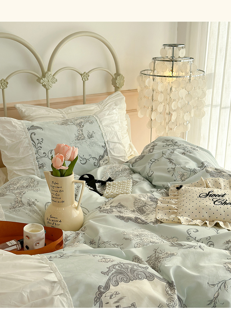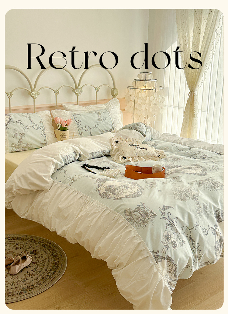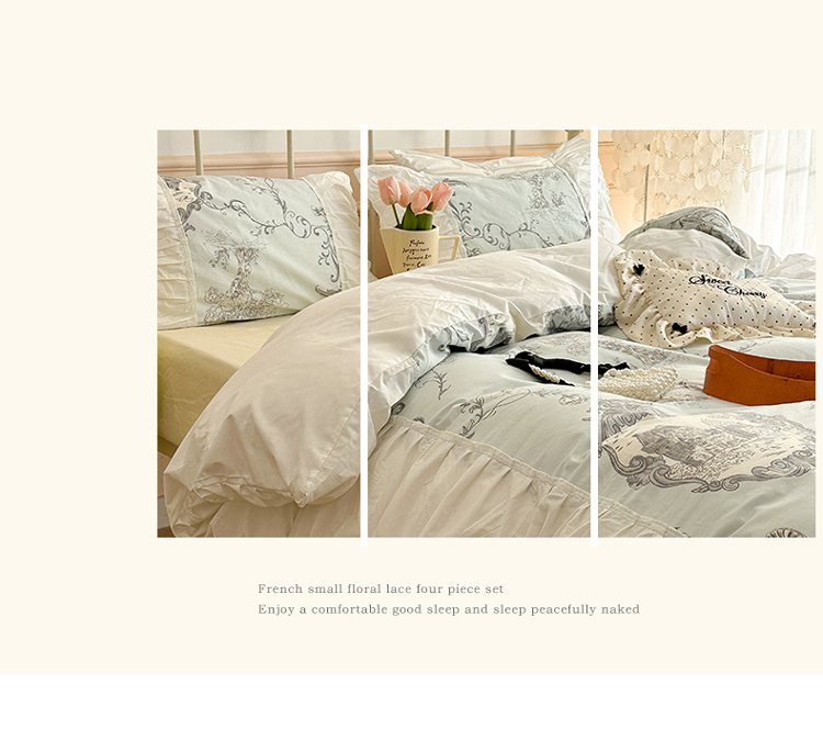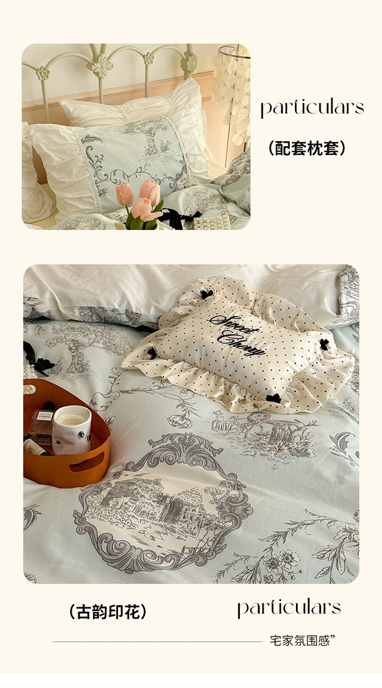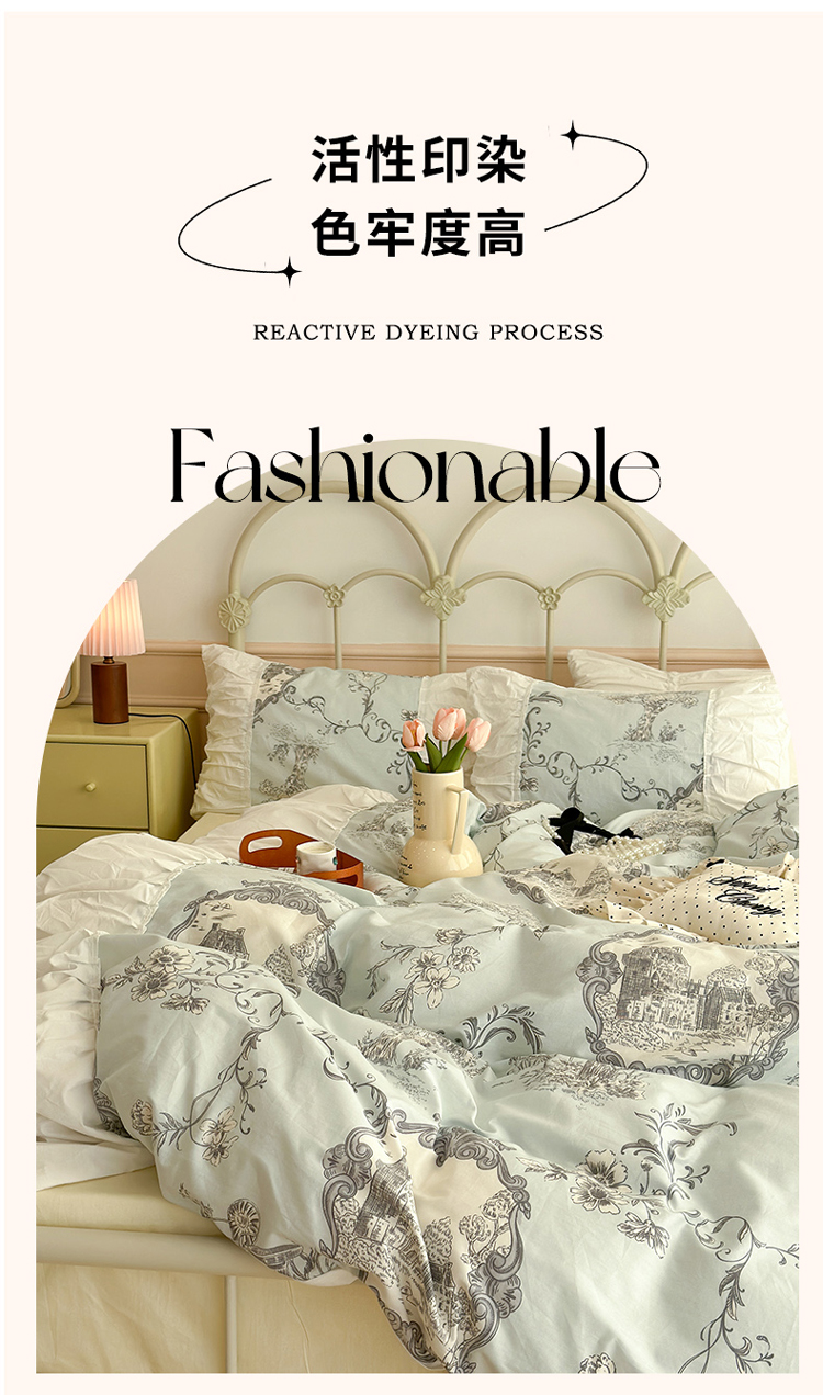 (总)昔可 新款褶皱花边全棉复古风四件套