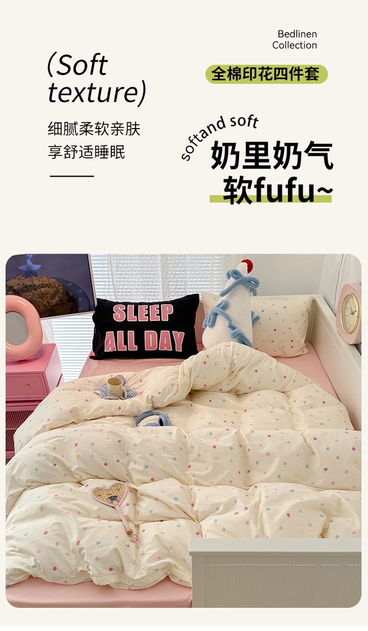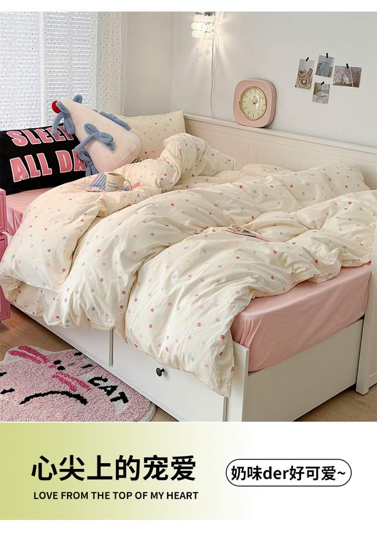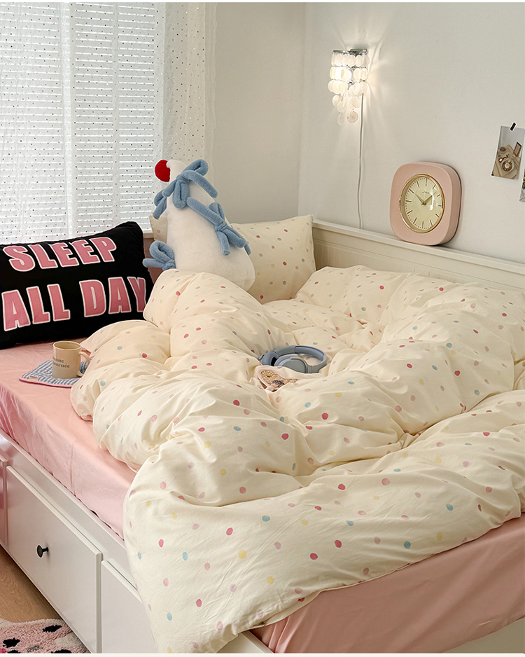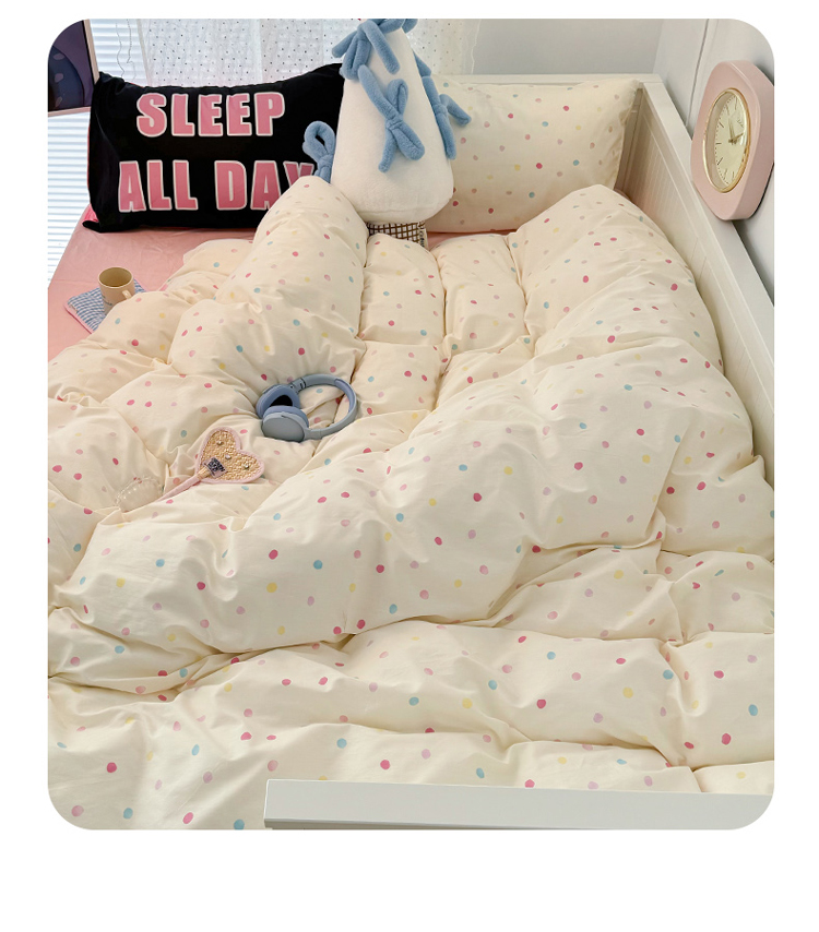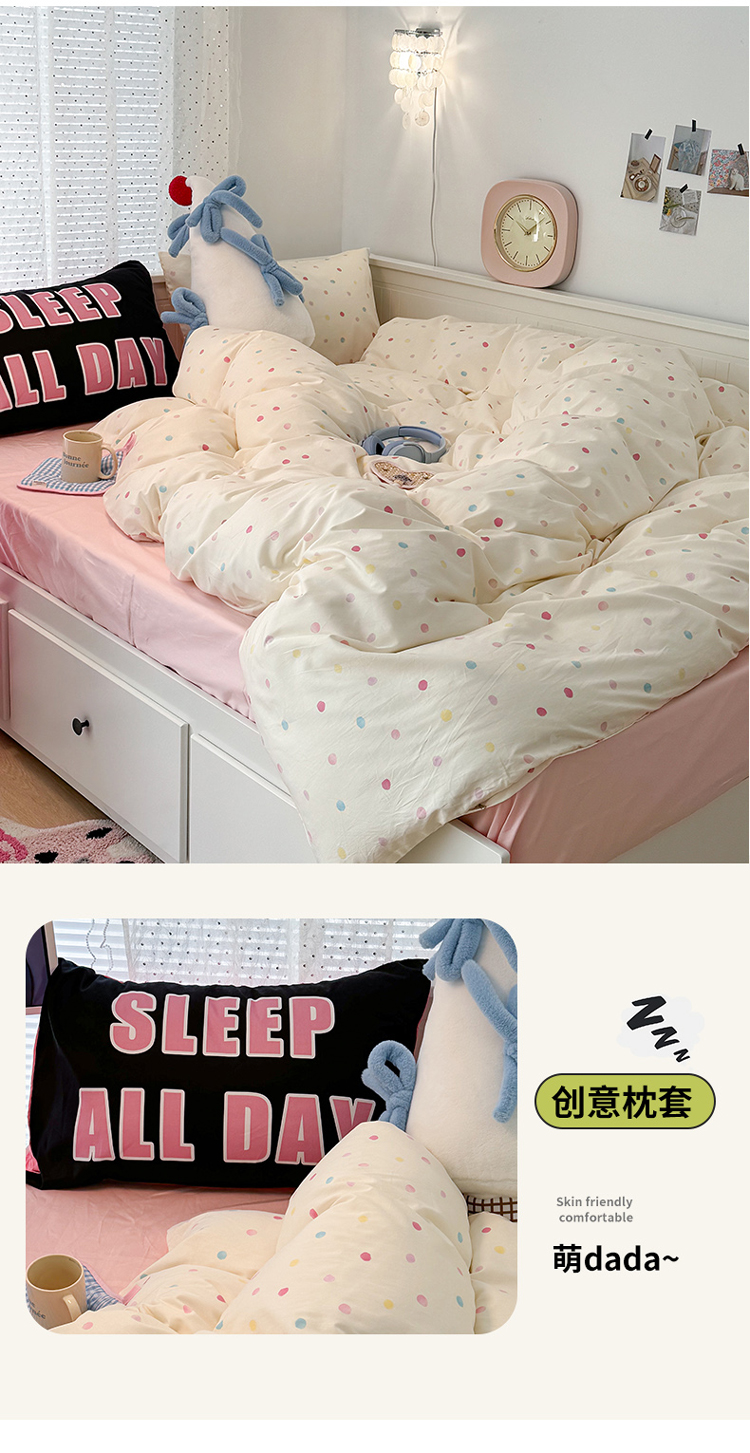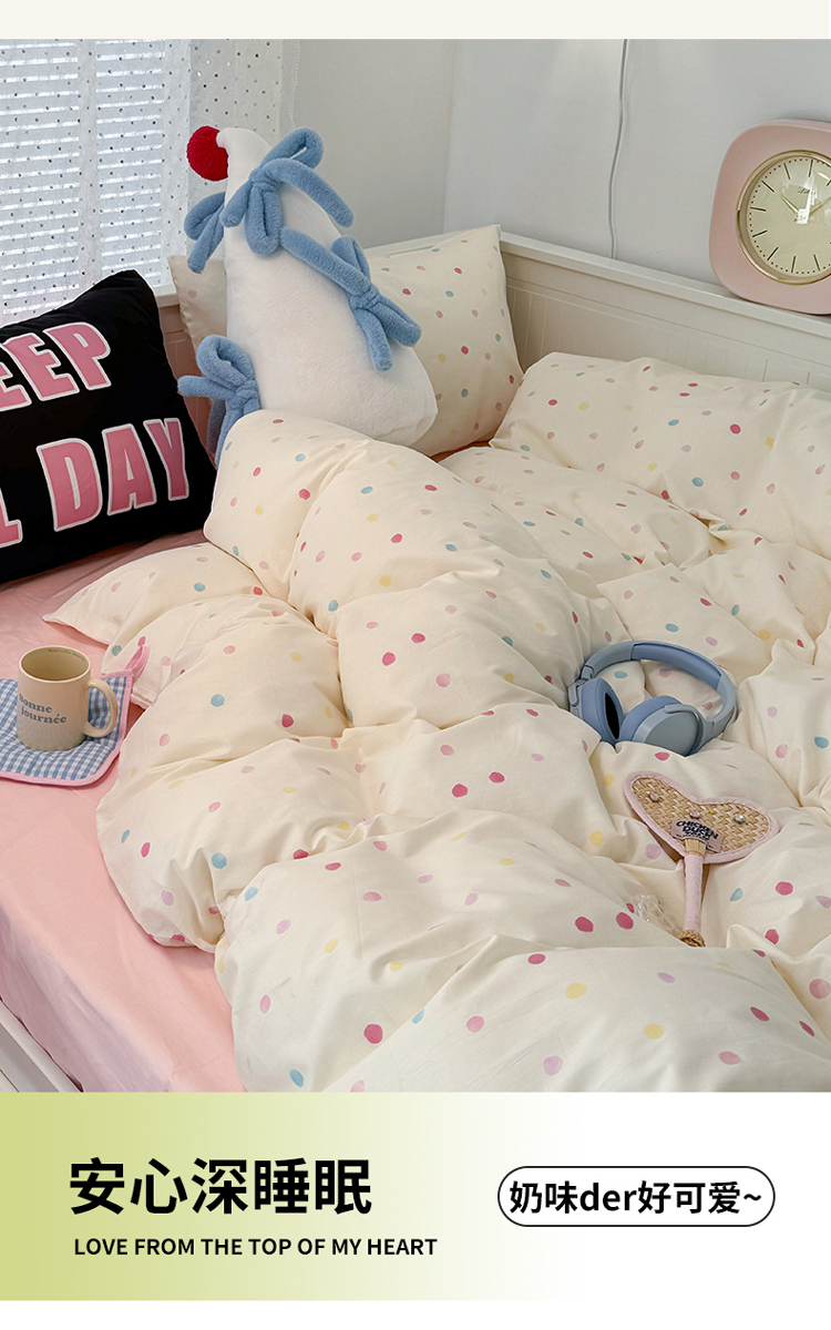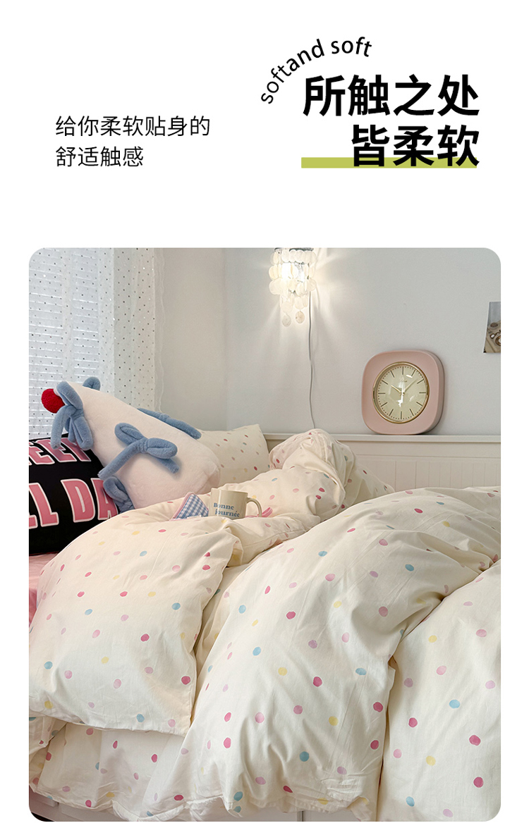 昔可 新款创意枕套时尚柔舒全棉四件套 彩色点点