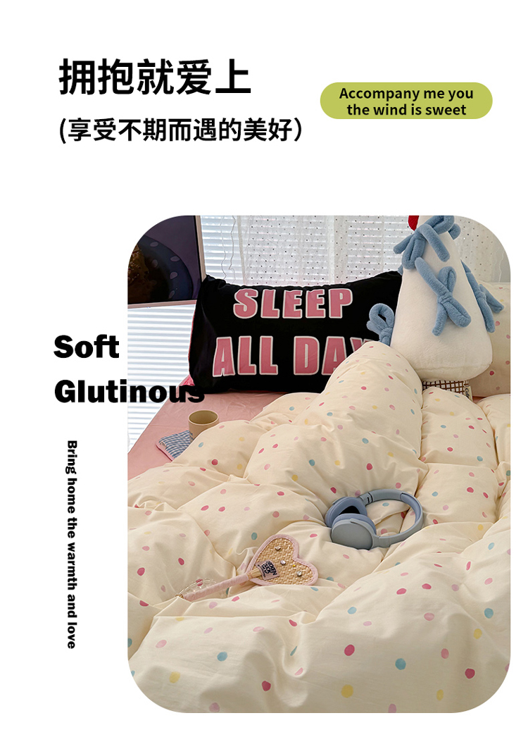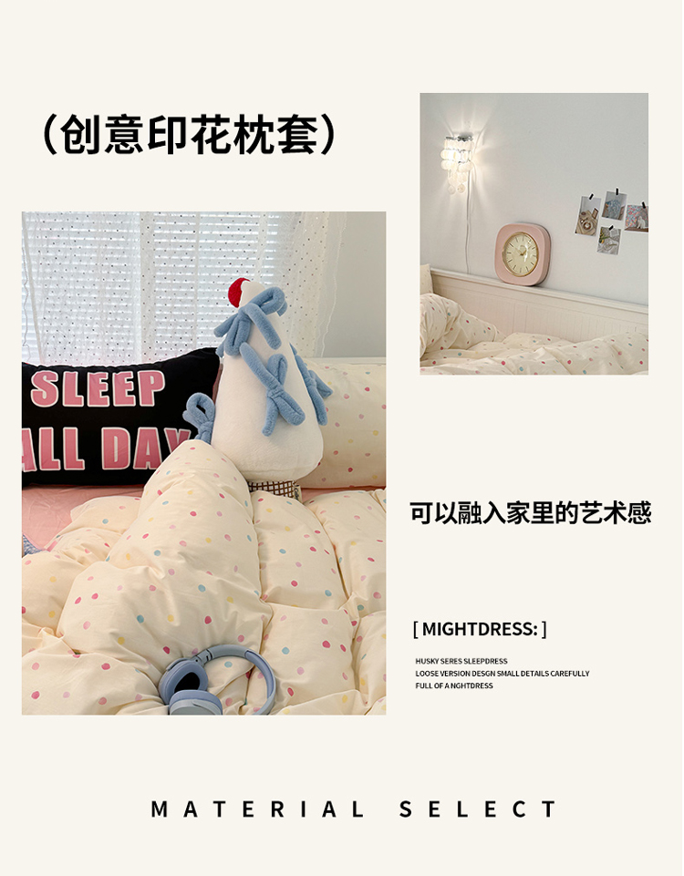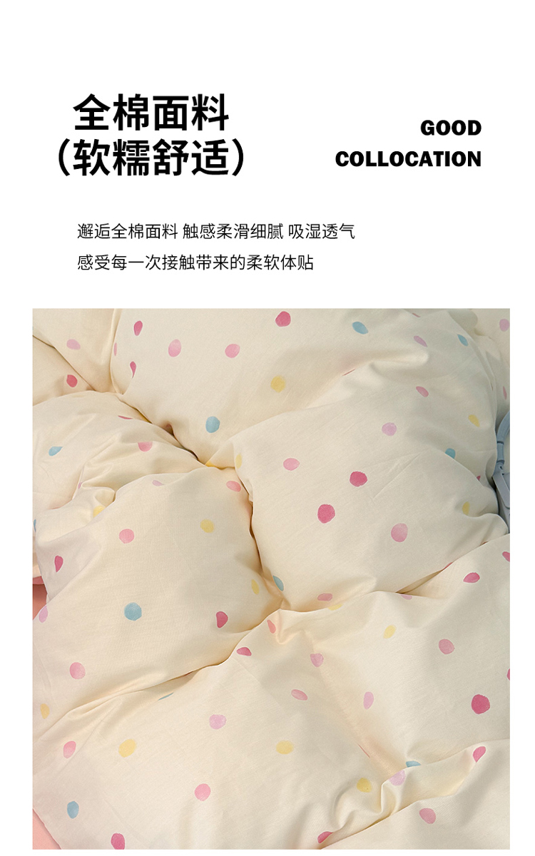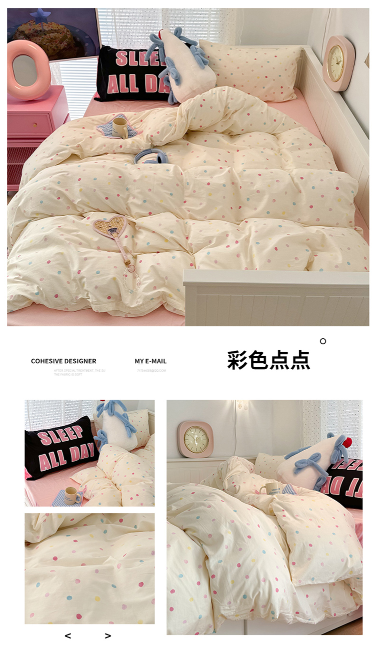 商品名称:昔可 新款创意枕套时尚柔舒全棉四件套 彩色点点