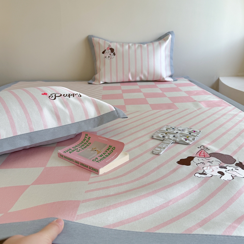柚子YOUTH 2024新款高端养生900D冰丝绣花凉席 恬谧小狗