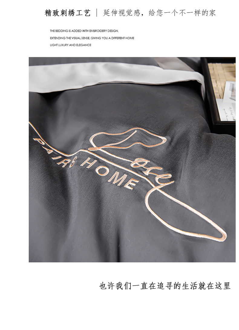 (总)瑞驰家纺 2025新款长绒棉绣花莱桉系列四件套,莱桉-贝壳白,莱桉-朵拉灰,莱桉-驼褐,莱桉-棕橙