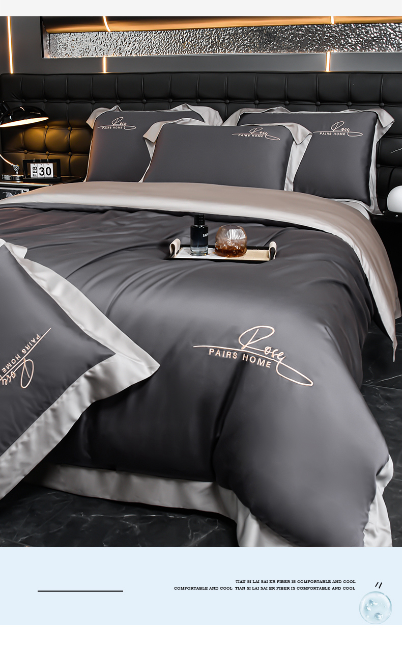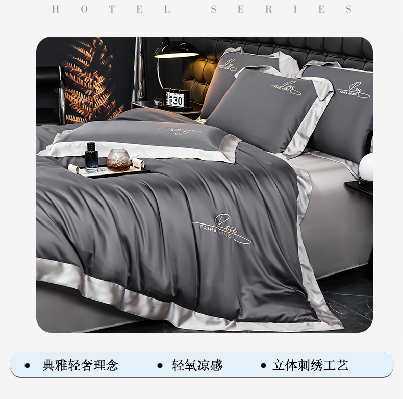 瑞驰家纺2024新款60兰精天丝四件套-罗莎琳系列(风格二) 暮云灰