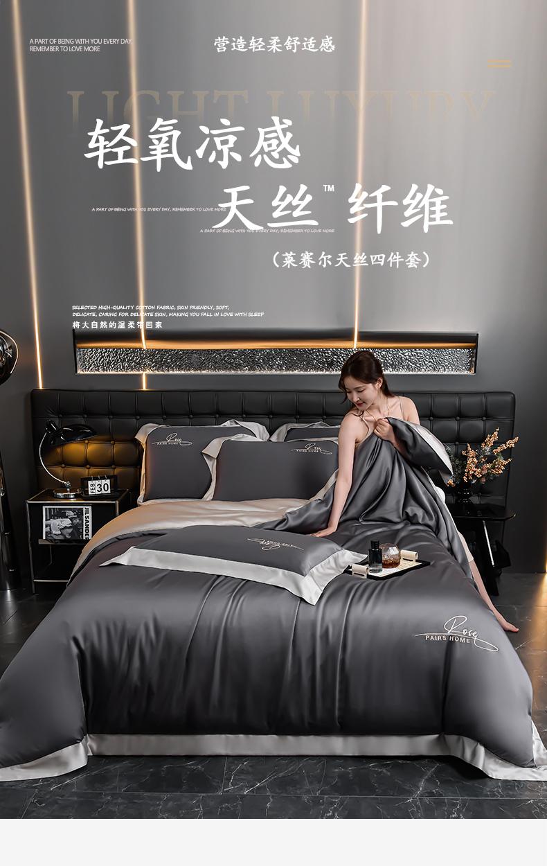 商品名称:瑞驰家纺2024新款60兰精天丝四件套-罗莎琳系列(风格二) 暮云灰