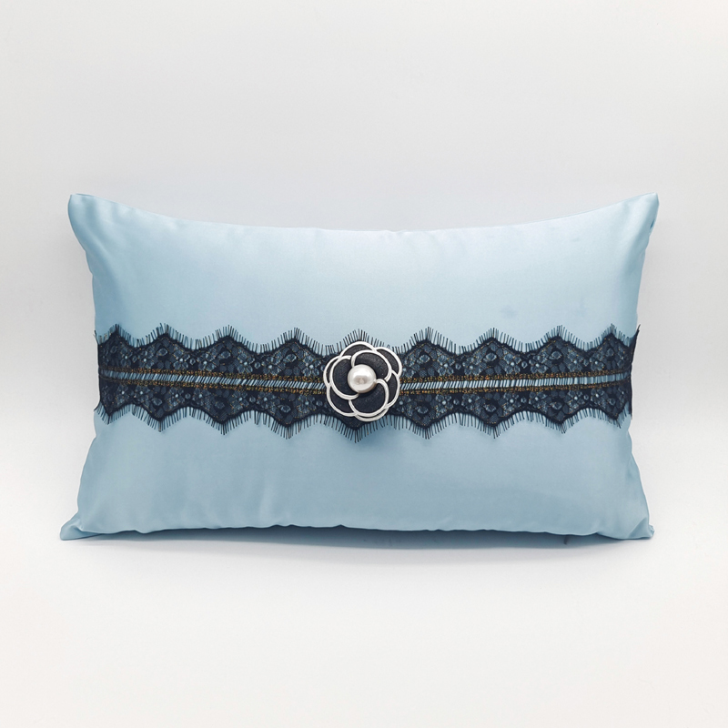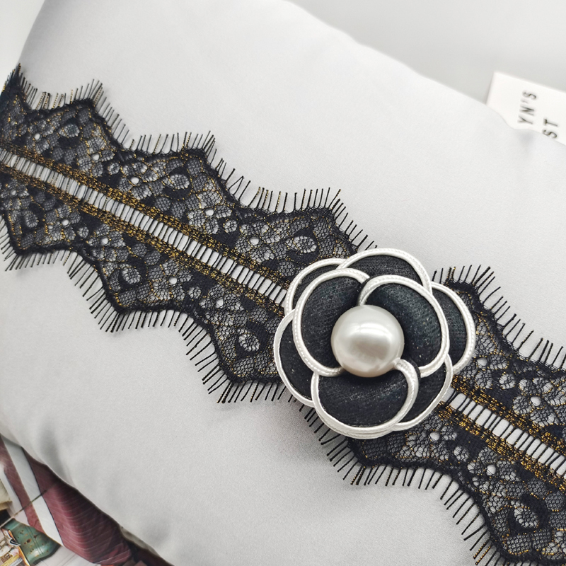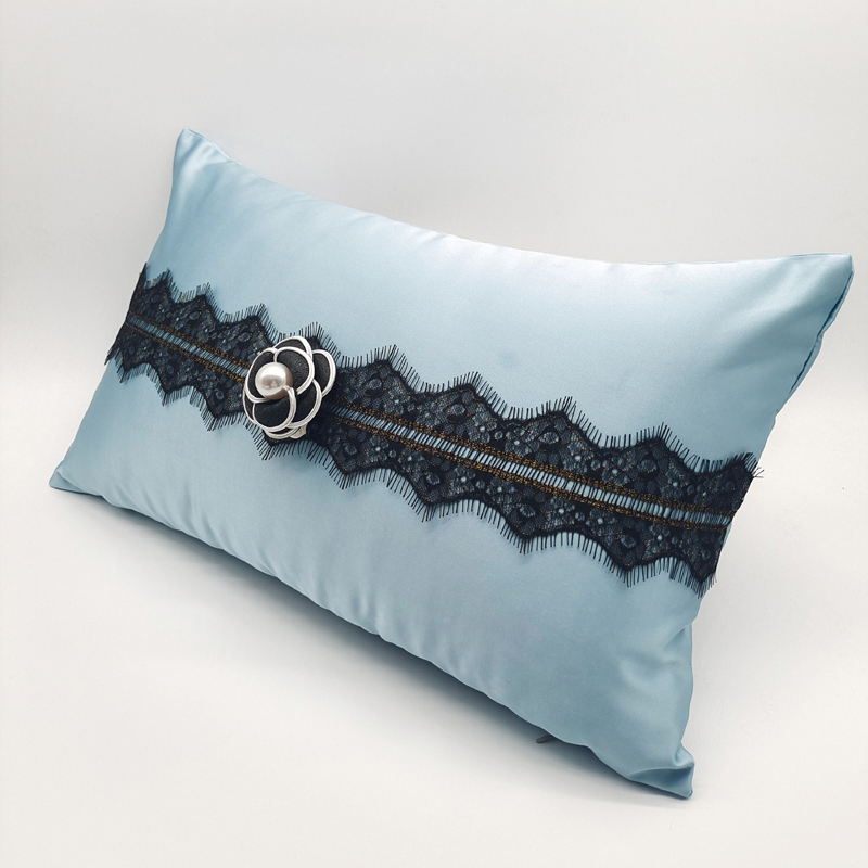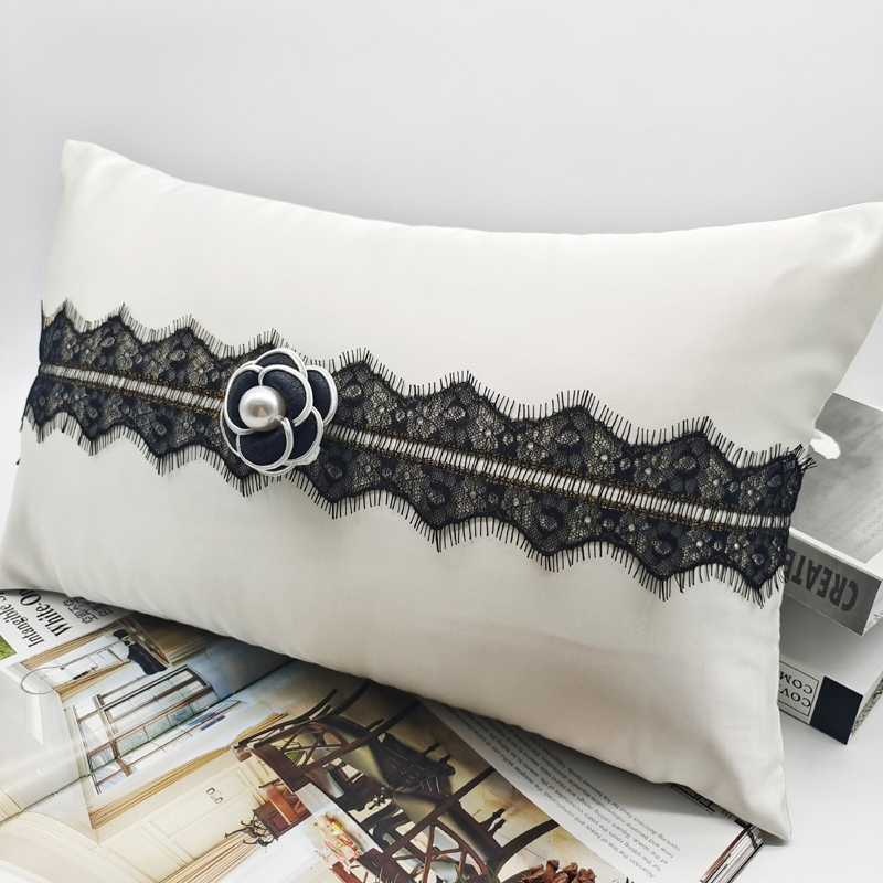 (总)澜屿 新款珍珠蕾丝小抱枕装饰枕腰枕枕芯,蕾丝珍珠(黑)