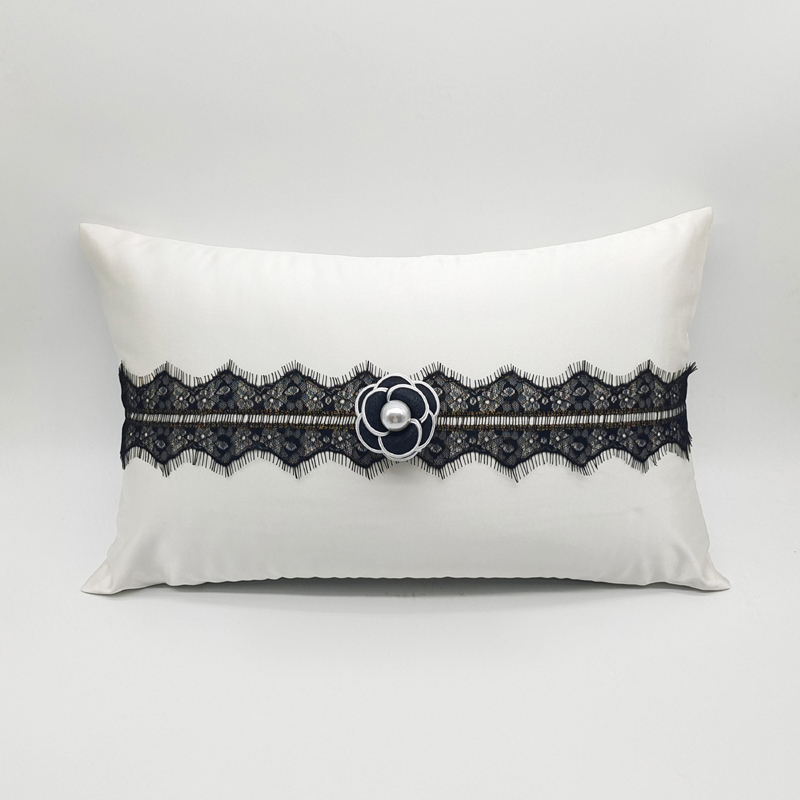 (总)澜屿 新款洛琳珍珠蕾丝小抱枕装饰枕腰枕枕芯,洛琳黑