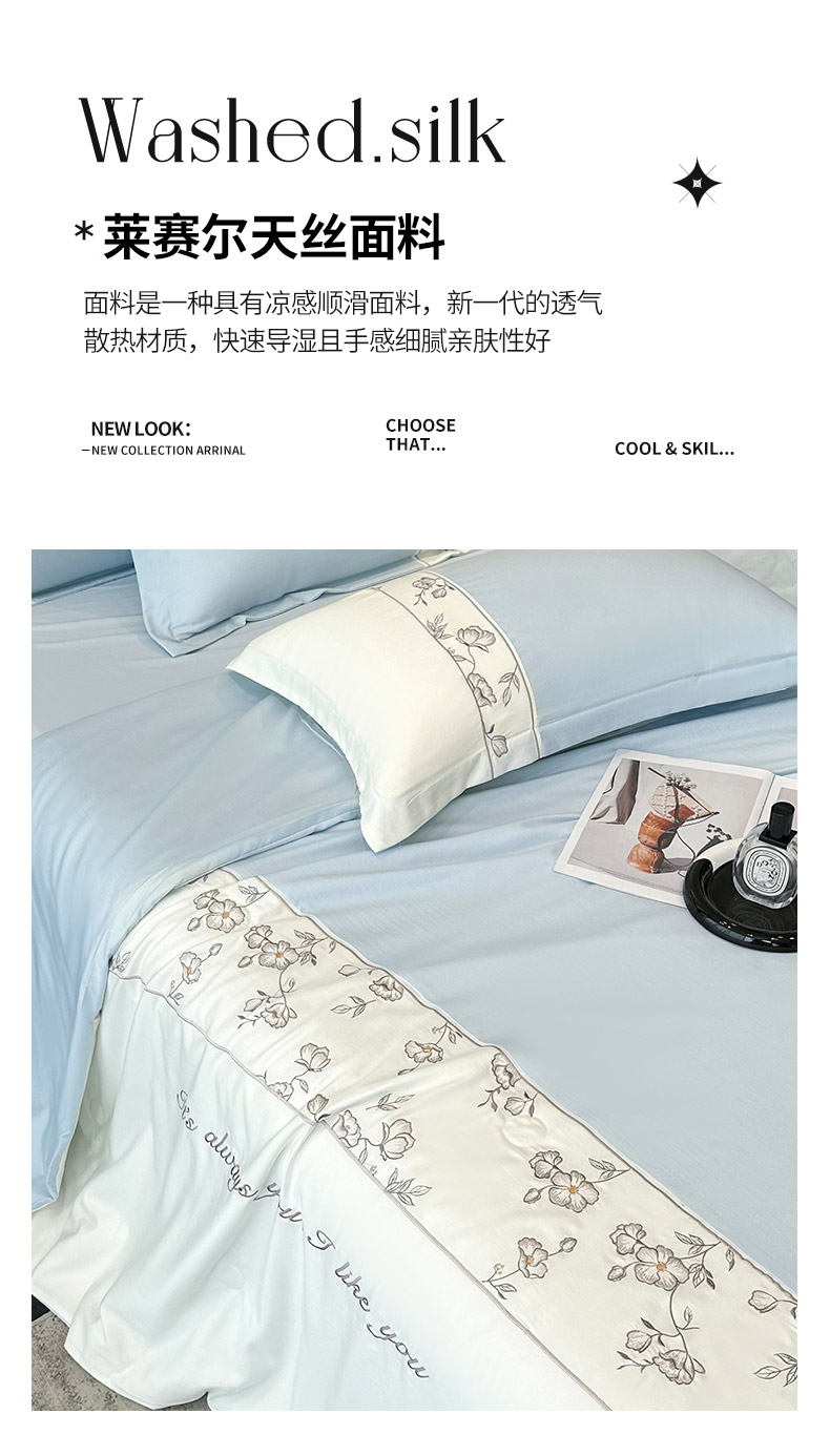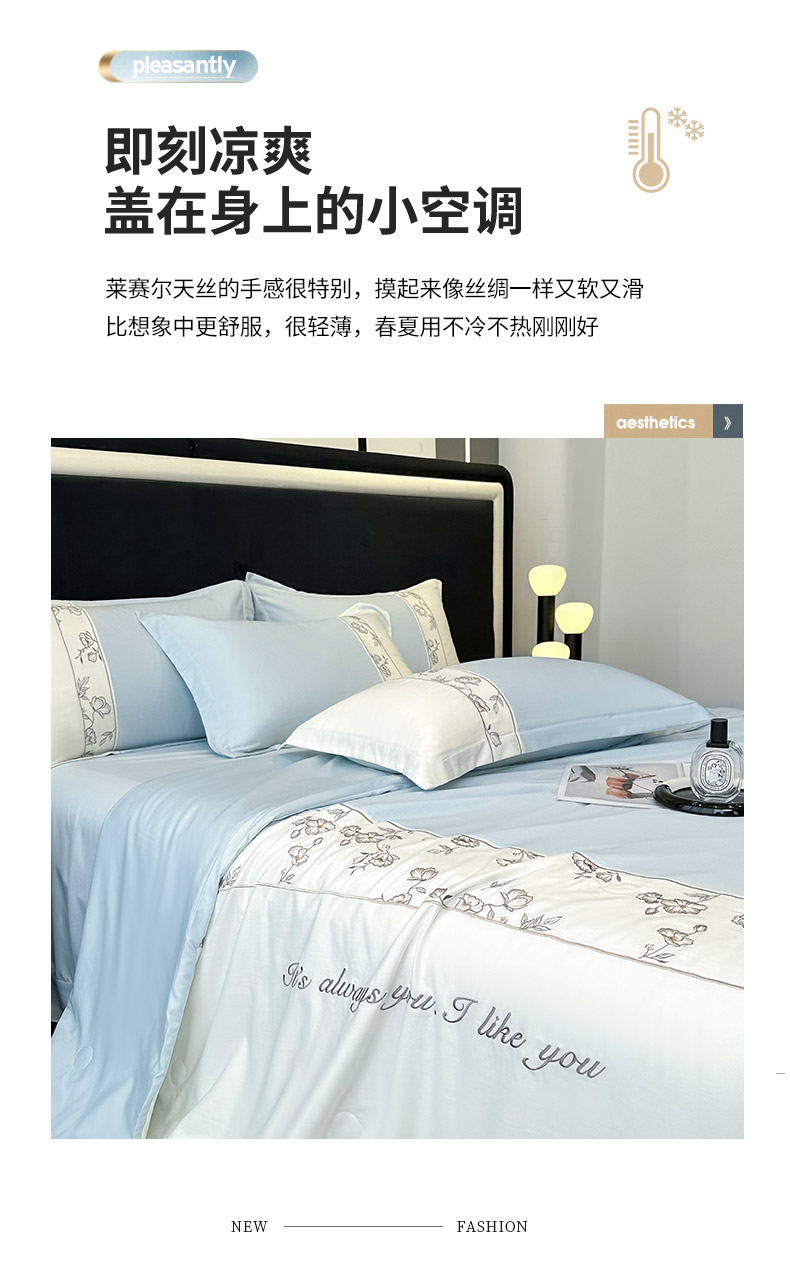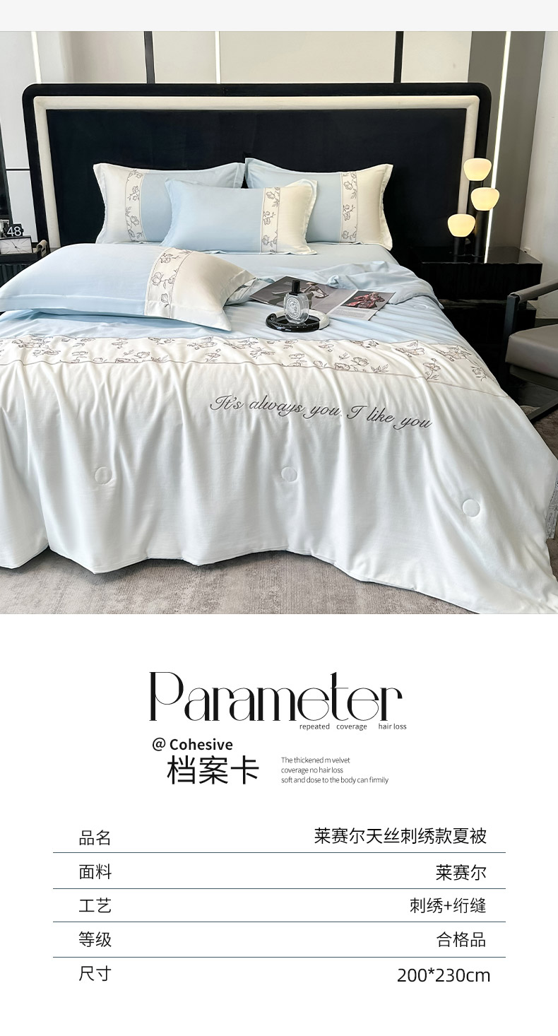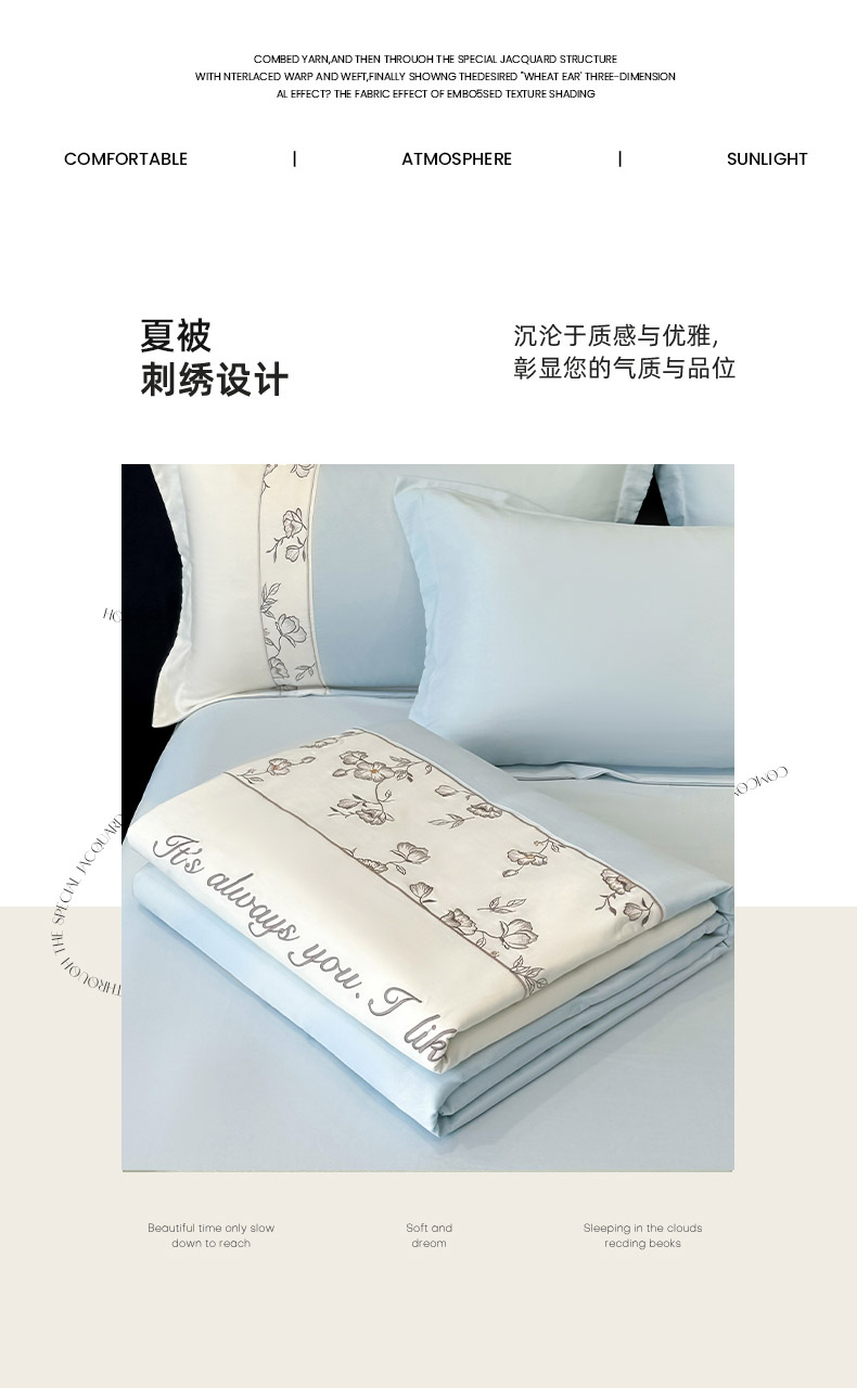 商品名称:天一阁 2024新款莱赛尔天丝刺绣夏被四件套 花海-蓝