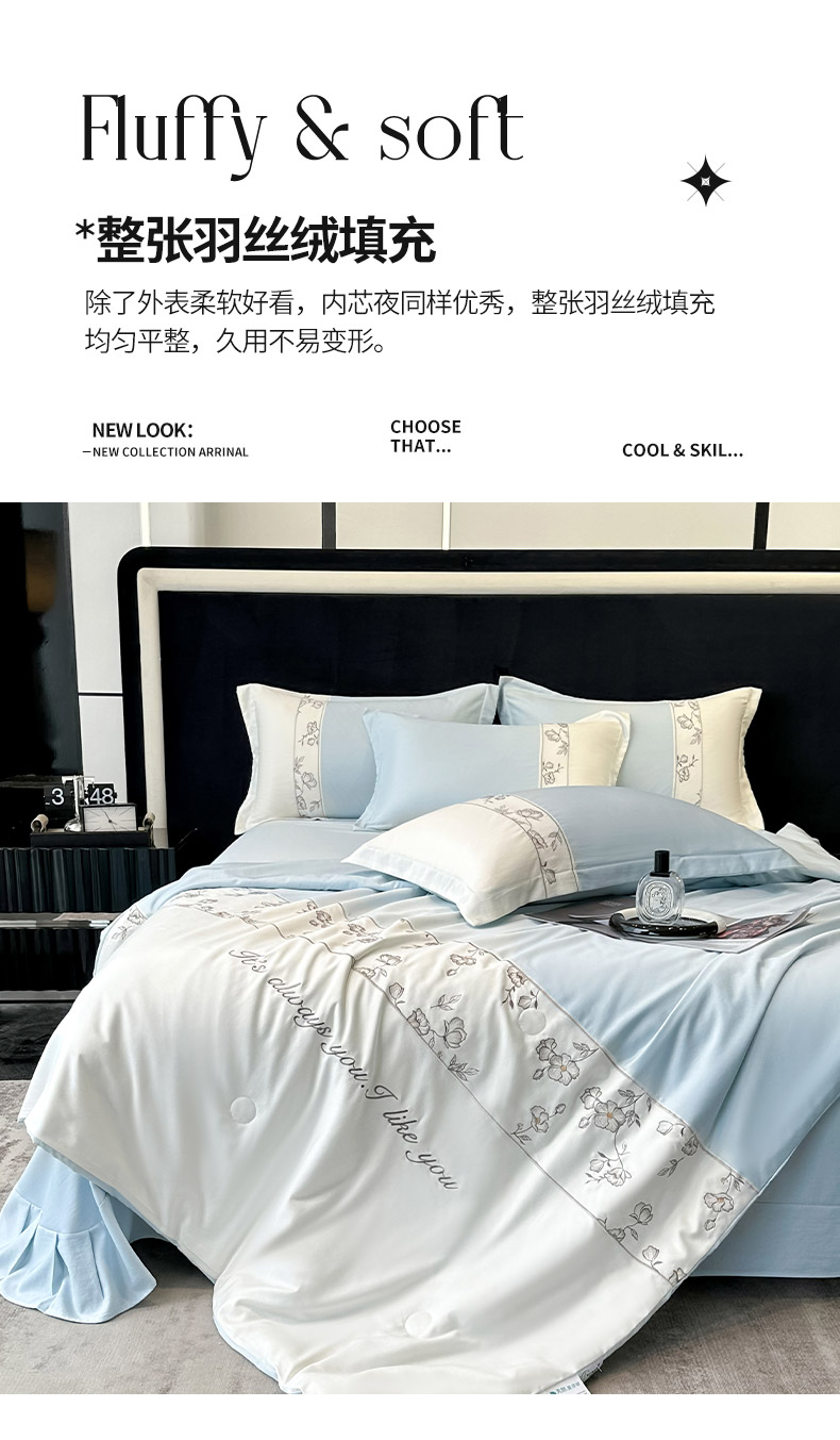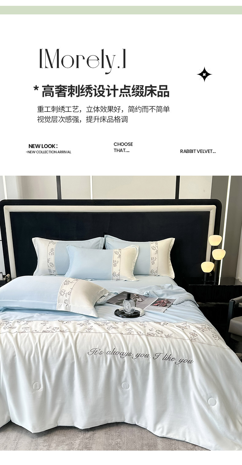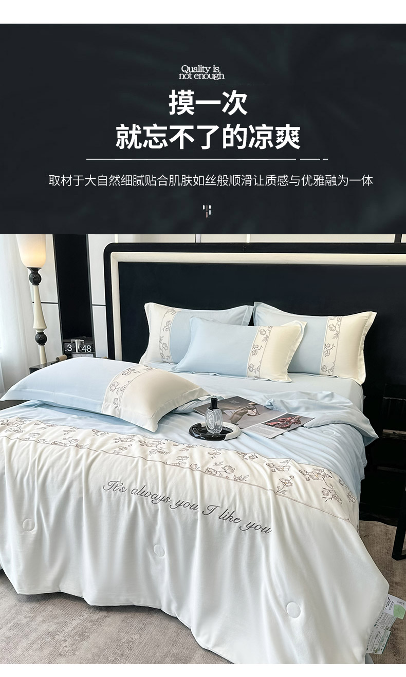 商品名称:天一阁 2024新款莱赛尔天丝刺绣夏被四件套 花海-蓝