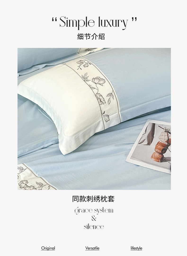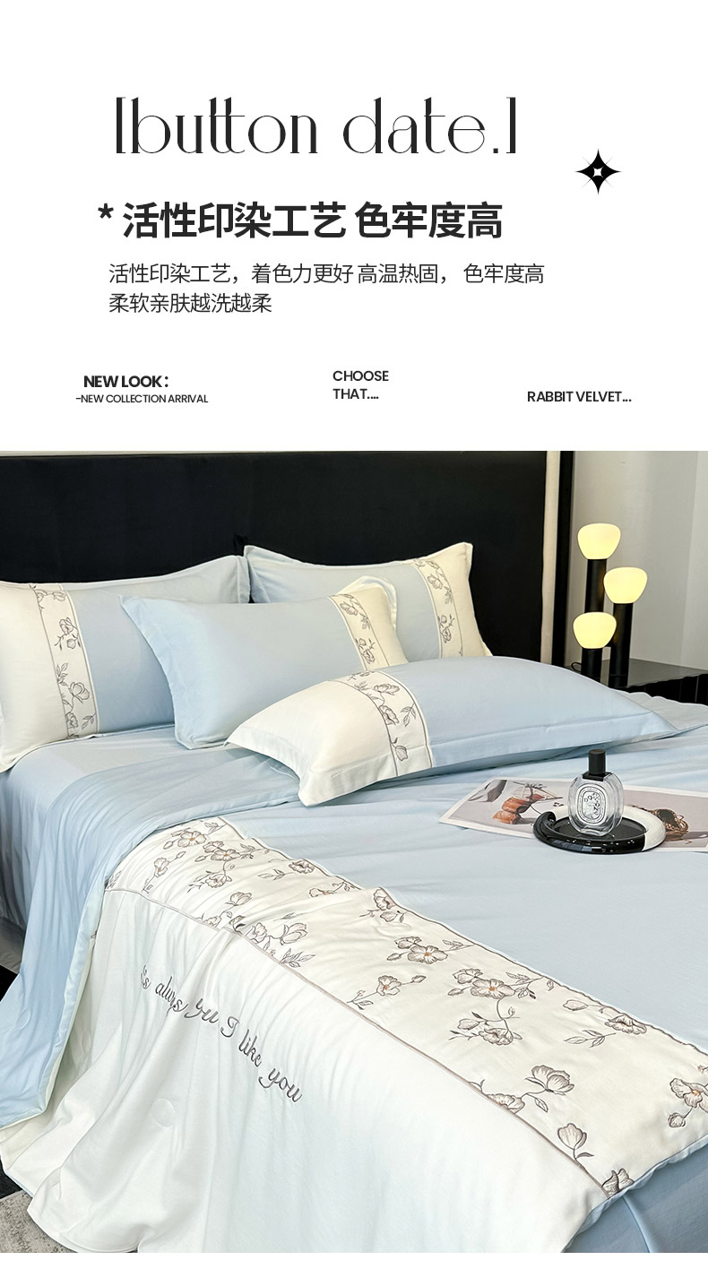 天一阁 2024新款莱赛尔天丝刺绣夏被四件套 花海-蓝