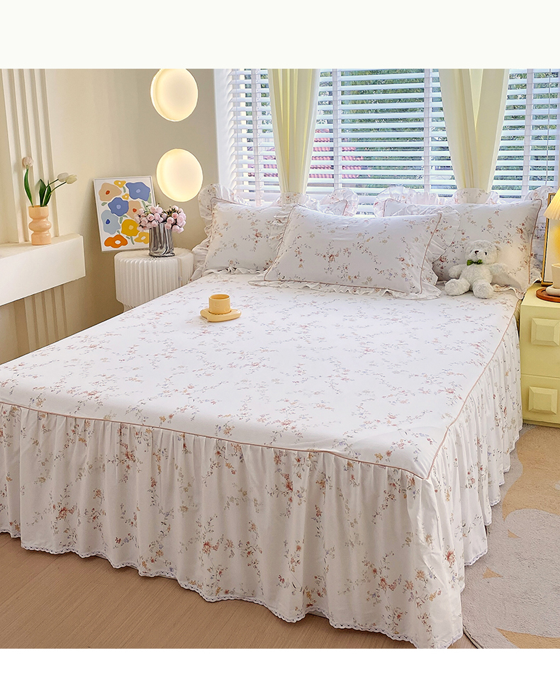 宝齐莱2024新款全棉13372韩版印花四件套单品系列-单床裙 花容