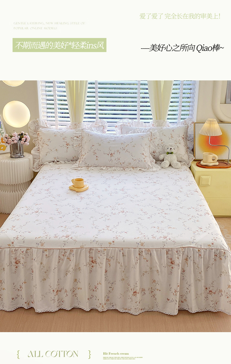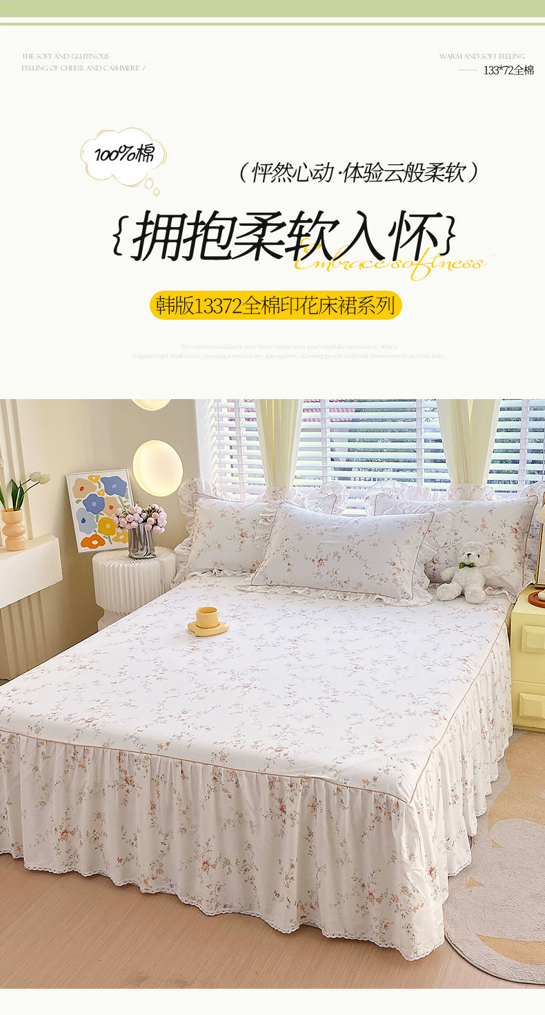 • 91家纺网 家纺一手货源 找家纺 宝齐莱2024新款全棉13372韩版印花四件套单品系列-单床裙 花容