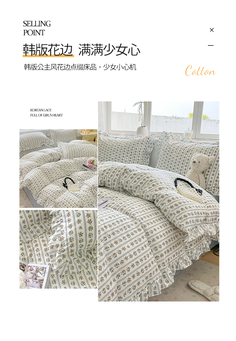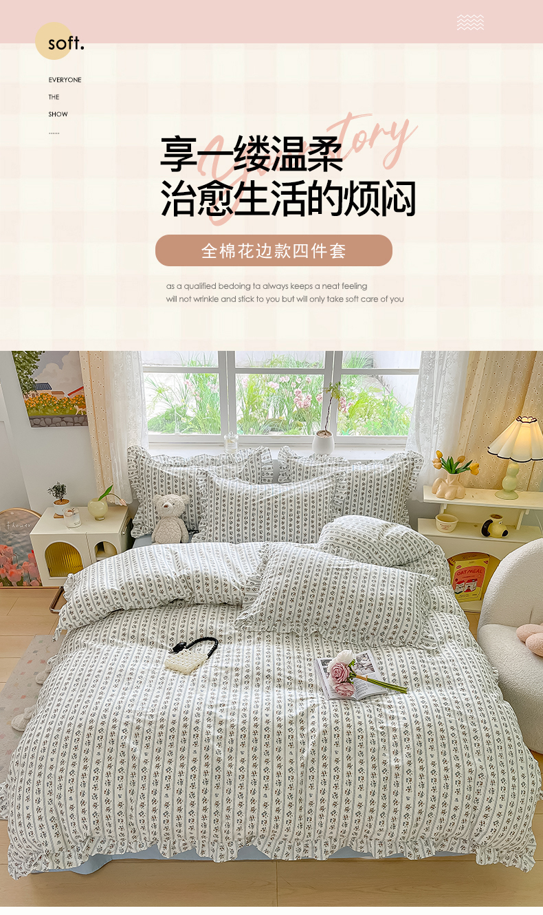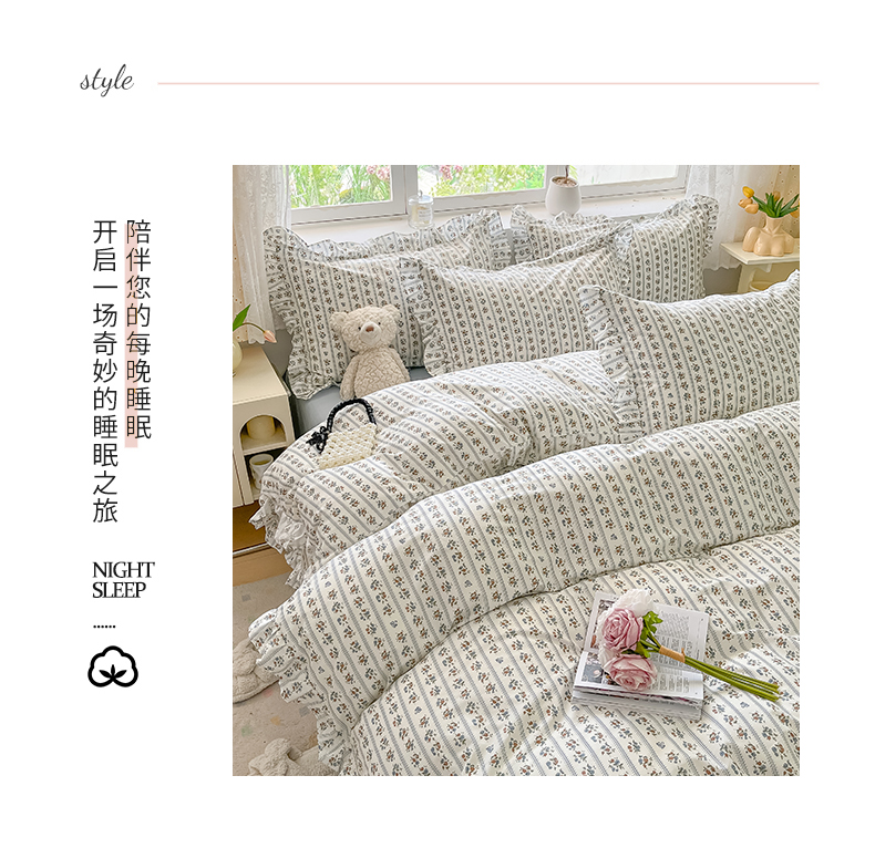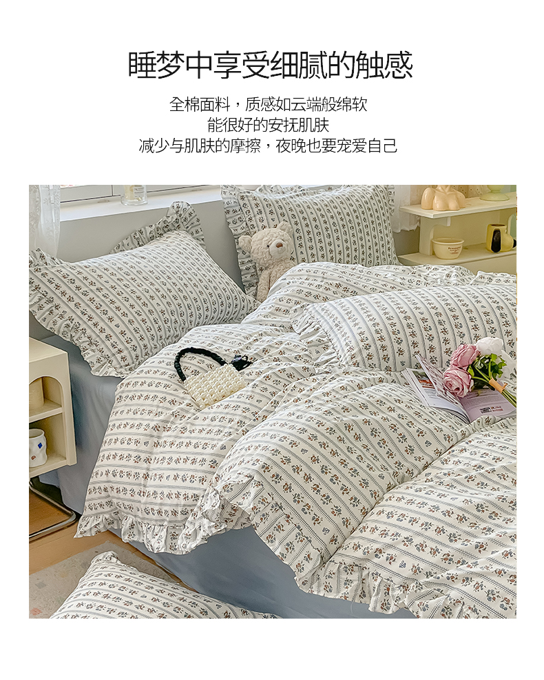 当前位置: 91家纺网 > 商品网购 > 床品套件 > 四件套 > 全棉普通四件套 > 柠馨 2024新款全棉印花浪漫花边款四件套 可可庄园
